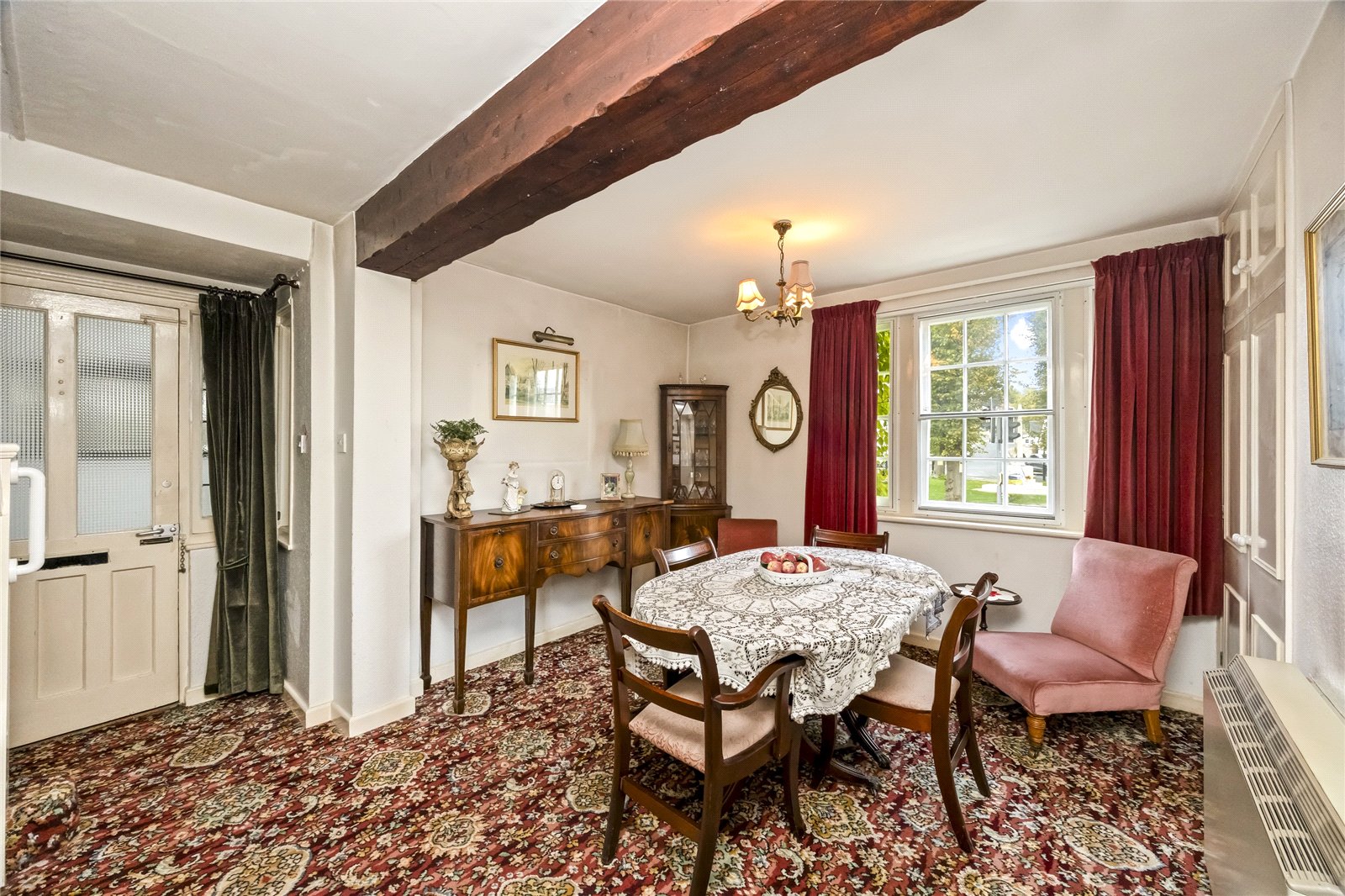The ground floor comprises two generous reception rooms, one dining area and one lounge. Bursting with character you will find within these fireplaces, wooden beams and more. Beyond here you will find a fitted kitchen offering counter and cupboard space to both sides with space for white goods and completed with the AGA The bright conservatory opens onto the rear garden and a separate utility room and with downstairs WC add practicality to the layout. Upstairs, the property benefits from three well-proportioned bedrooms. While bedrooms 1 and 2 both benefit from built in wardrobe space, bedroom 3 is currently set out as a study with rear window looking over the garden. The family bathroom provides a large shower cubicle, WC, hand basin, heated towel rail and frosted rear window.