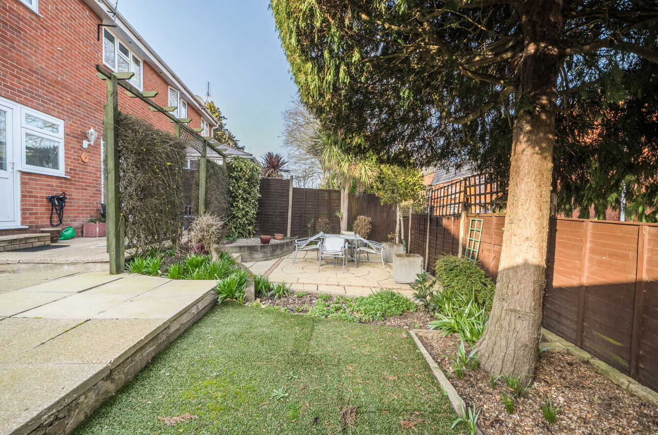 The home further benefits from off-road parking, with a hardstanding driveway in front of the garage, and a generously sized rear garden featuring areas laid to patio and lawn.