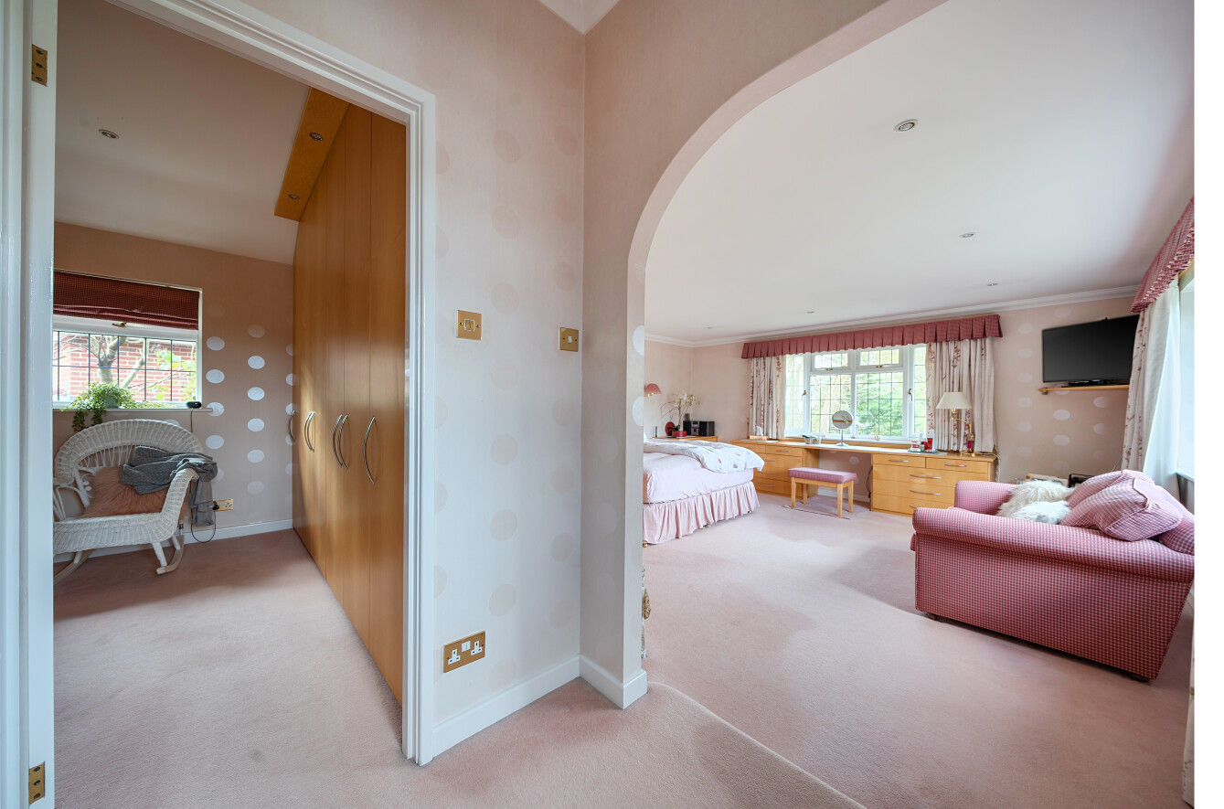 On the first floor there is a spacious landing. The principal suite is found on the left accessed via the inner landing, comprising a superb dual aspect bedroom, a large walk-in dressing room and a stunning, luxurious en-suite bathroom that will appeal to discerning purchasers. Bedroom two has fitted wardrobes with an adjacent dressing area that links to the en-suite bathroom. Two further double bedrooms benefit from fitted wardrobes and are served by a bathroom and separate WC.
