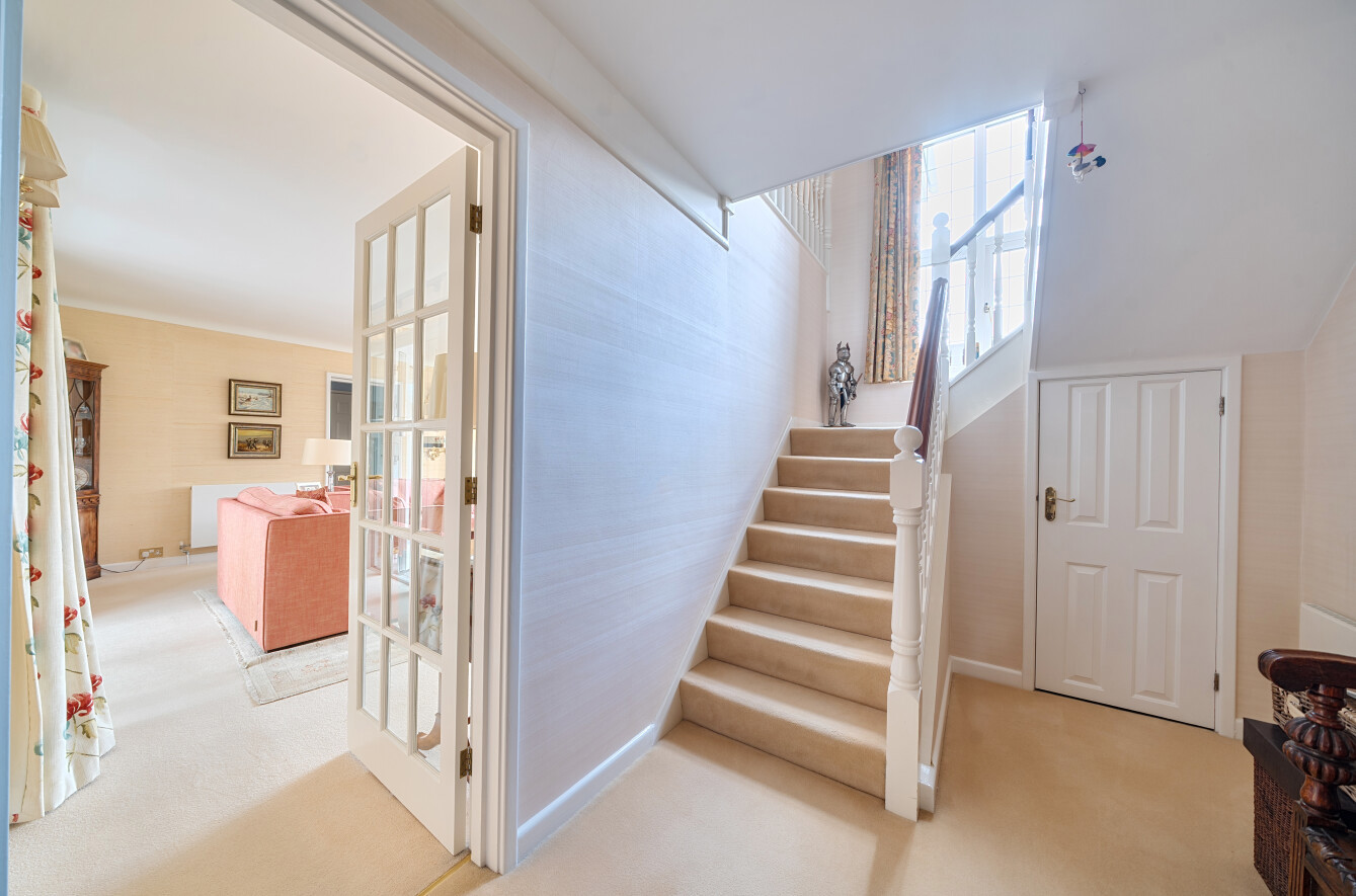 A private plot exceeding three quarters of an acre with far reaching views to the Winchester countryside provides the perfect setting for this impressive detached home that is available for the first time in over thirty years. The spacious accommodation is ideal for the growing family and, subject to the necessary consents, there is potential for a variety of alternative layouts or further extensions & alterations that will enhance the stature of this fine home. The hallway has a cloakroom and an open aspect leads to the dining room where a conservatory enjoys views of the garden. The tastefully appointed kitchen/breakfast room has a similar outlook and is generous in proportions with an extensive range of maple wall and base units. The useful side lobby has a storage cupboard and a utility room. The pleasant lounge is positioned on the left and has a front facing conservatory with an attractive vista. Beyind, the side lobby has a cloakroom and the study is the ideal venue for a home office. The additional dual aspect games/family room is an exceptional size and could be adapted to provide an annexe.