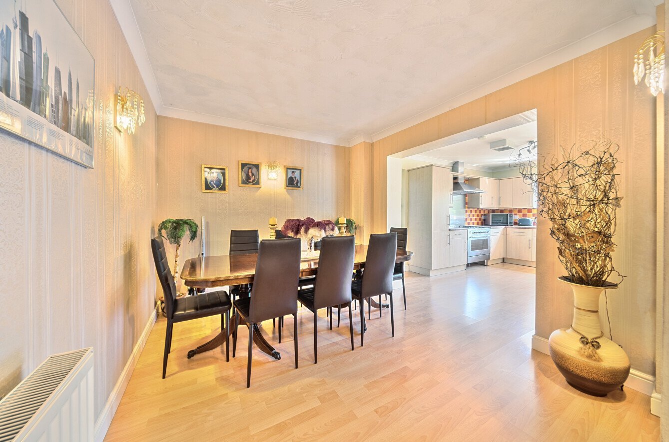 The accommodation comprises a central hallway with a shower room and a study/optional bedroom found on the left. The generous size lounge has a front aspect and leads to the superb open plan live-in kitchen which is an excellent sociable area overlooking the rear garden and has a breakfast bar and ample room for sofas. There is a separate dining room also approached from the hallway & kitchen together with the garage that comprises a useful gym/storage area and a utility room.
