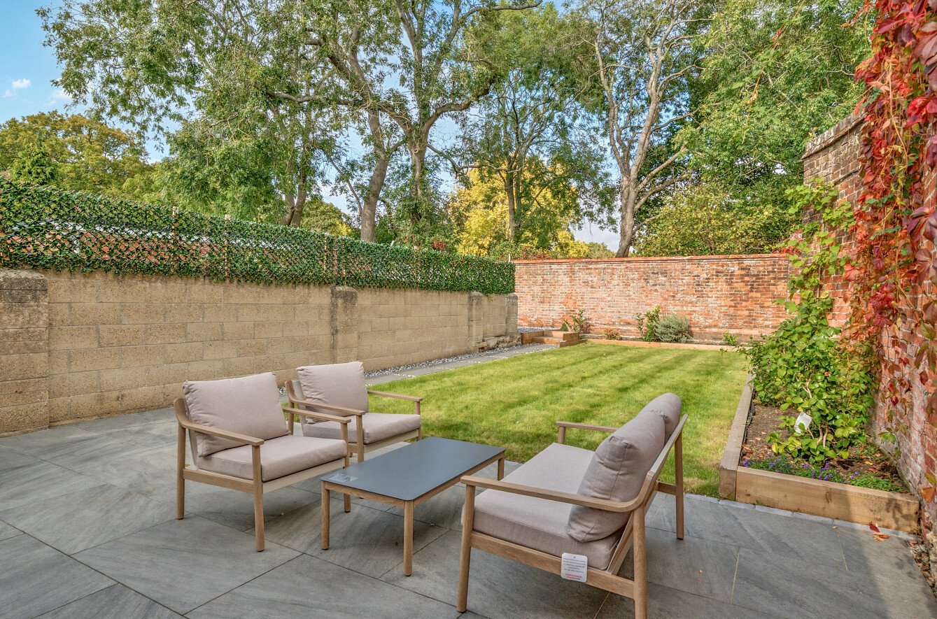 A single garage that is approached via a service lane is found on the rear boundary with a pedestrian door allowing access to the rear garden.