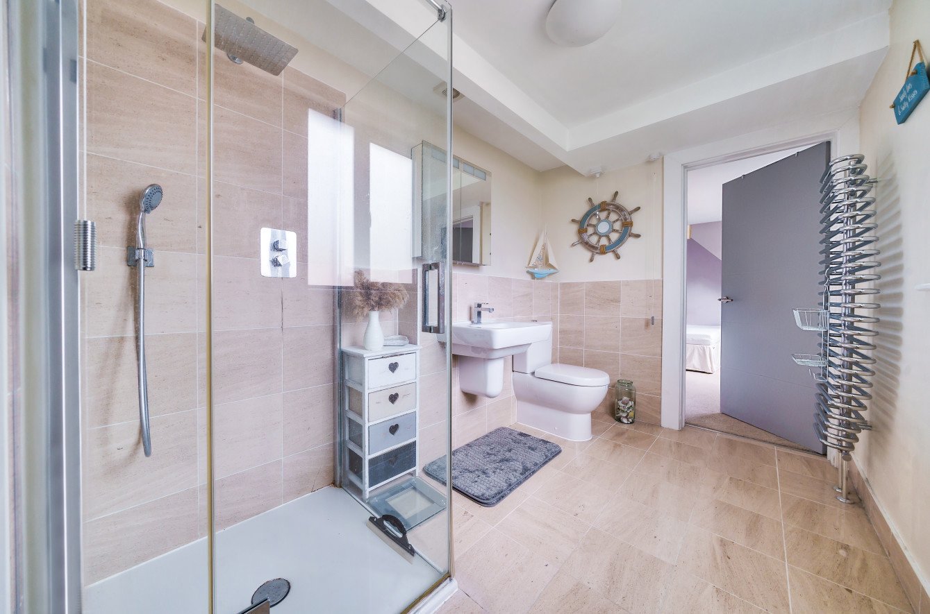On the first floor, the principal bedroom has a modern en-suite bathroom, a balcony with enchanting views and a dressing area/optional fourth bedroom. A separate, well-appointed shower room leads through to a double bedroom and there is a further double bedroom that has a front view.
