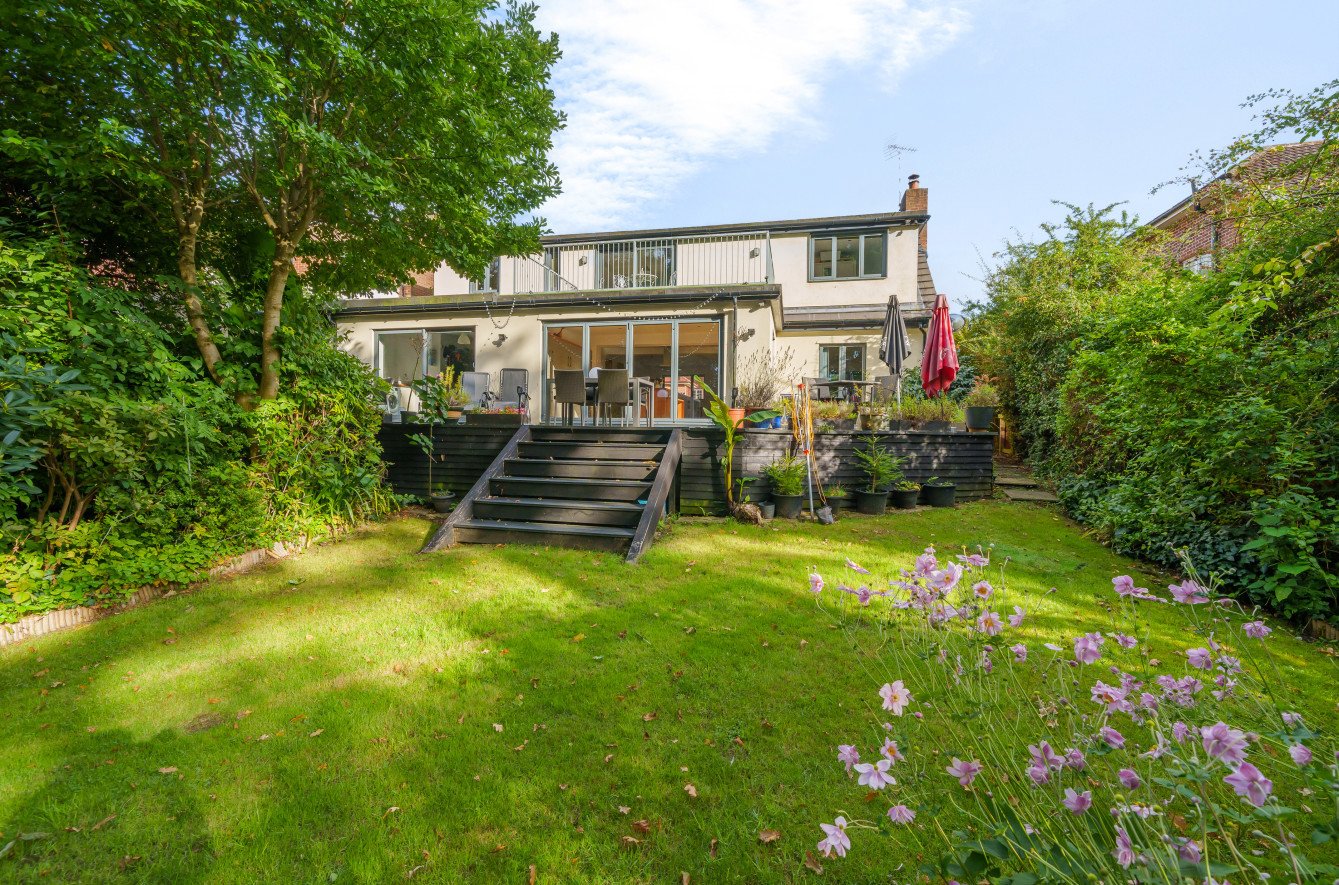 Outside, the block paviour driveway provides off road parking for several vehicles. The rear garden has a large deck with steps down to the lawn where a path leads down to the woodland area that has a stream and a gate to the golf course.