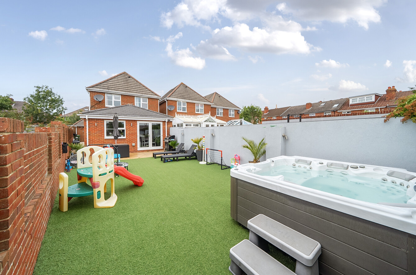 Externally, the property benefits from a detached garage with power and lighting, parking to the front, and a low-maintenance rear garden laid to patio and artificial lawn. A walkway to the side provides convenient access to the garage. A hot tub has also been installed in the garden, adding to the home's leisure appeal.