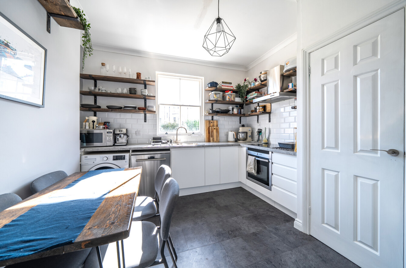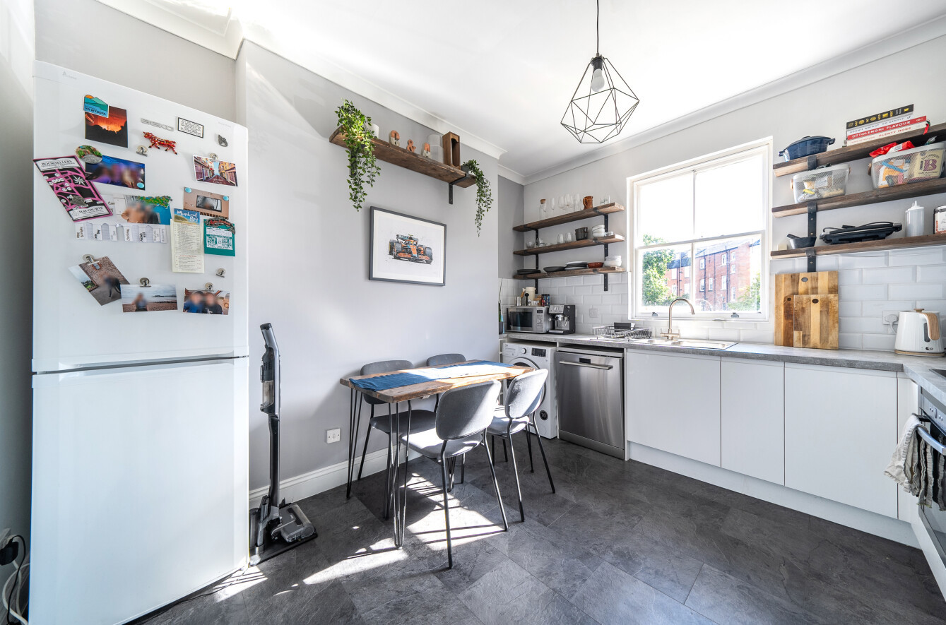 Internally, the apartment is tastefully customised throughout. The spacious sitting room features high ceilings, stripped wooden floor boards and a large sash window to the front allowing superb natural light to stream through the room. The upgraded kitchen/dining room has space for a table and chairs and offers ample storage solutions and worktop surface space.