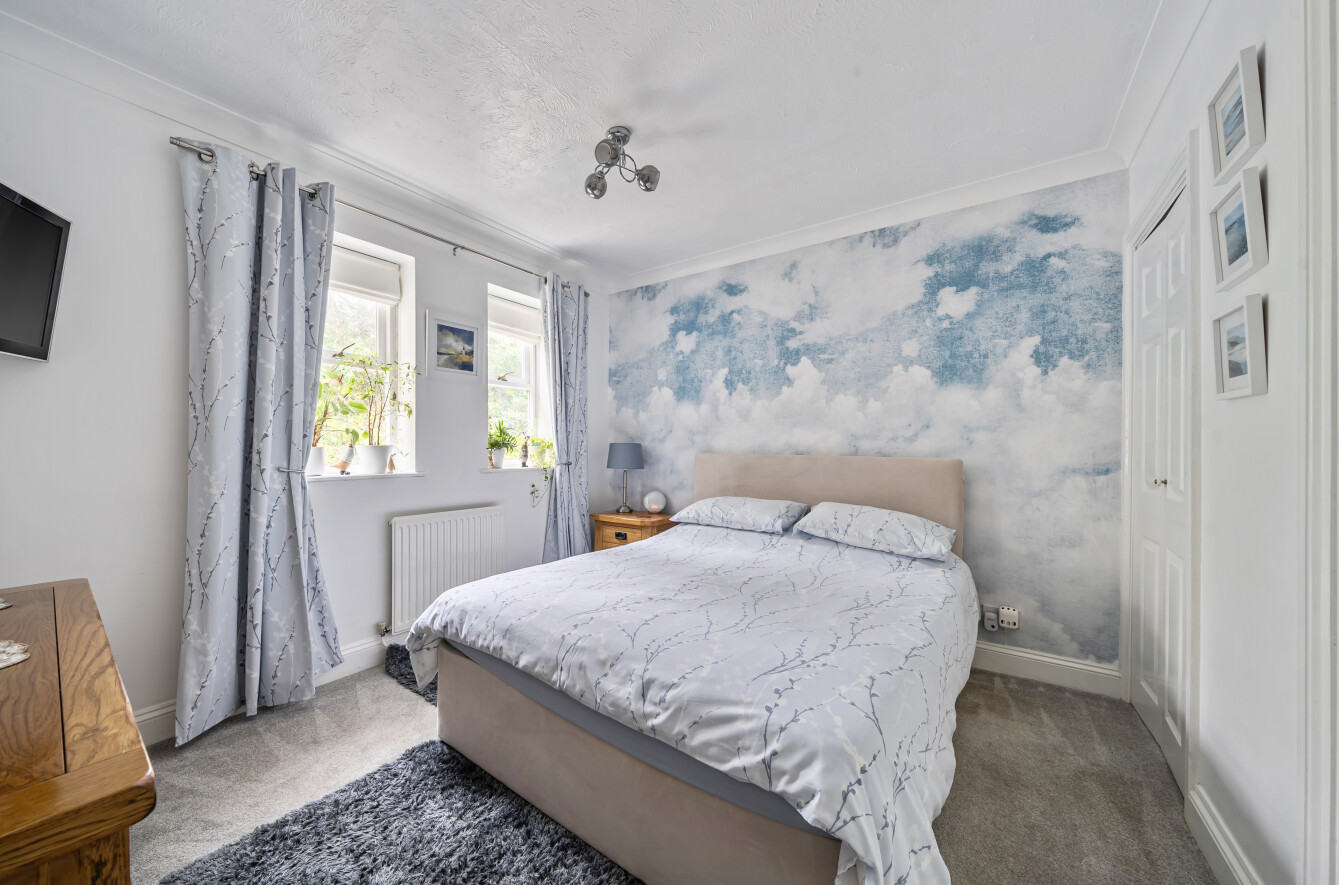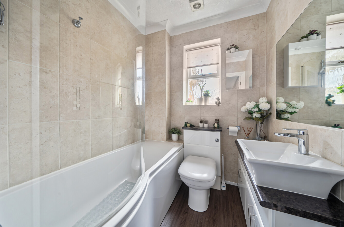 Upstairs, you’ll find four well-proportioned bedrooms, each filled with natural light from large windows. The master, second and third bedrooms include fitted wardrobes, and the master further benefits from an en-suite shower room featuring a corner hydrotherapy enclosure, concealed cistern W.C., and surface-mounted sink. The family bathroom on this floor offers a stylish three-piece suite comprising a panelled shower-bath, low-level W.C., and vanity sink unit with mixer tap.