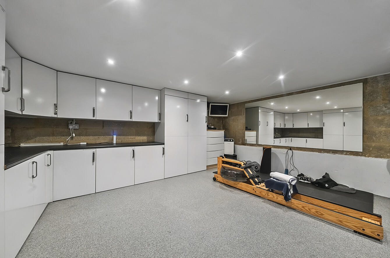 The lower ground floor offers a practical utility room and a flexible basement room, currently used as a workshop, ideal for hobbies or additional storage.