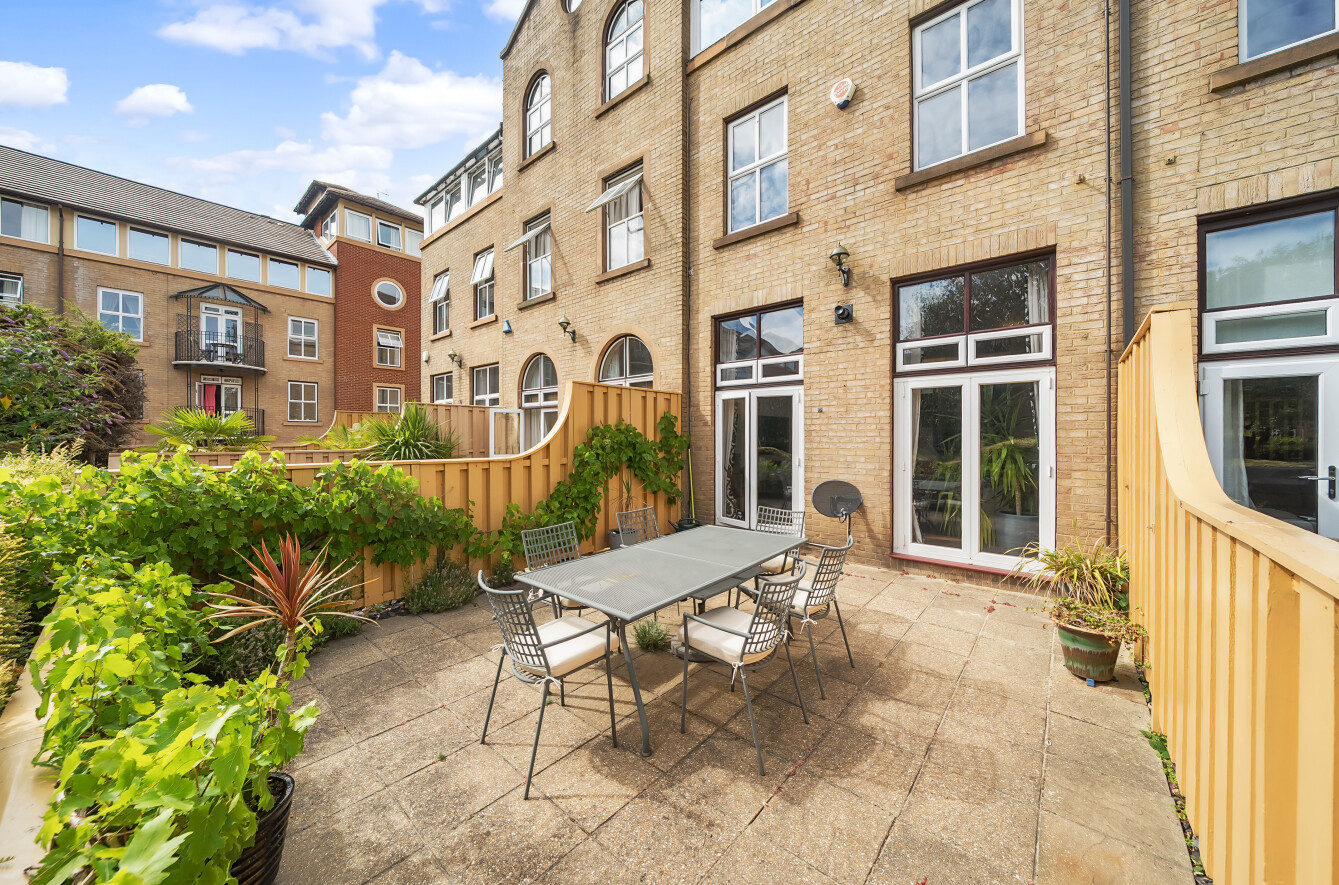 Outside, the private courtyard garden provides an ideal setting for summer entertaining, with residents also benefiting from access to well-maintained communal gardens. Additional conveniences include off-road parking, an integral garage with power, and proximity to waterfront amenities.