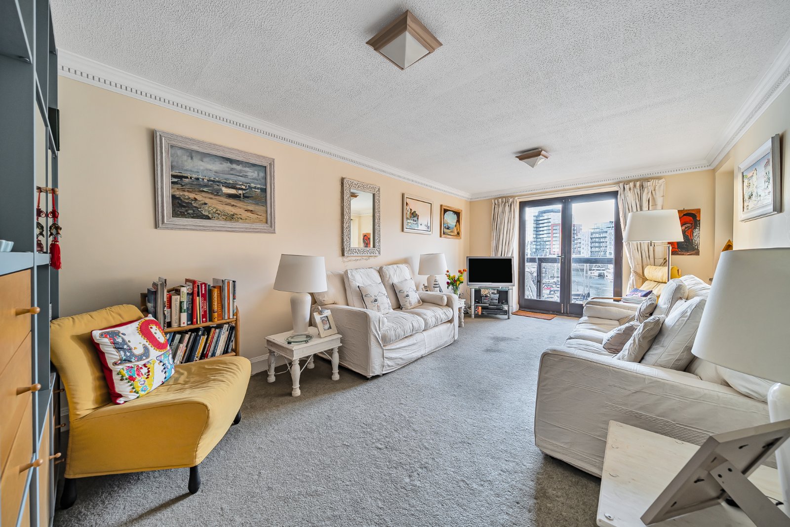 The living room is the standout feature and benefits from French doors leading to a west-facing balcony offering stunning views of the marina.