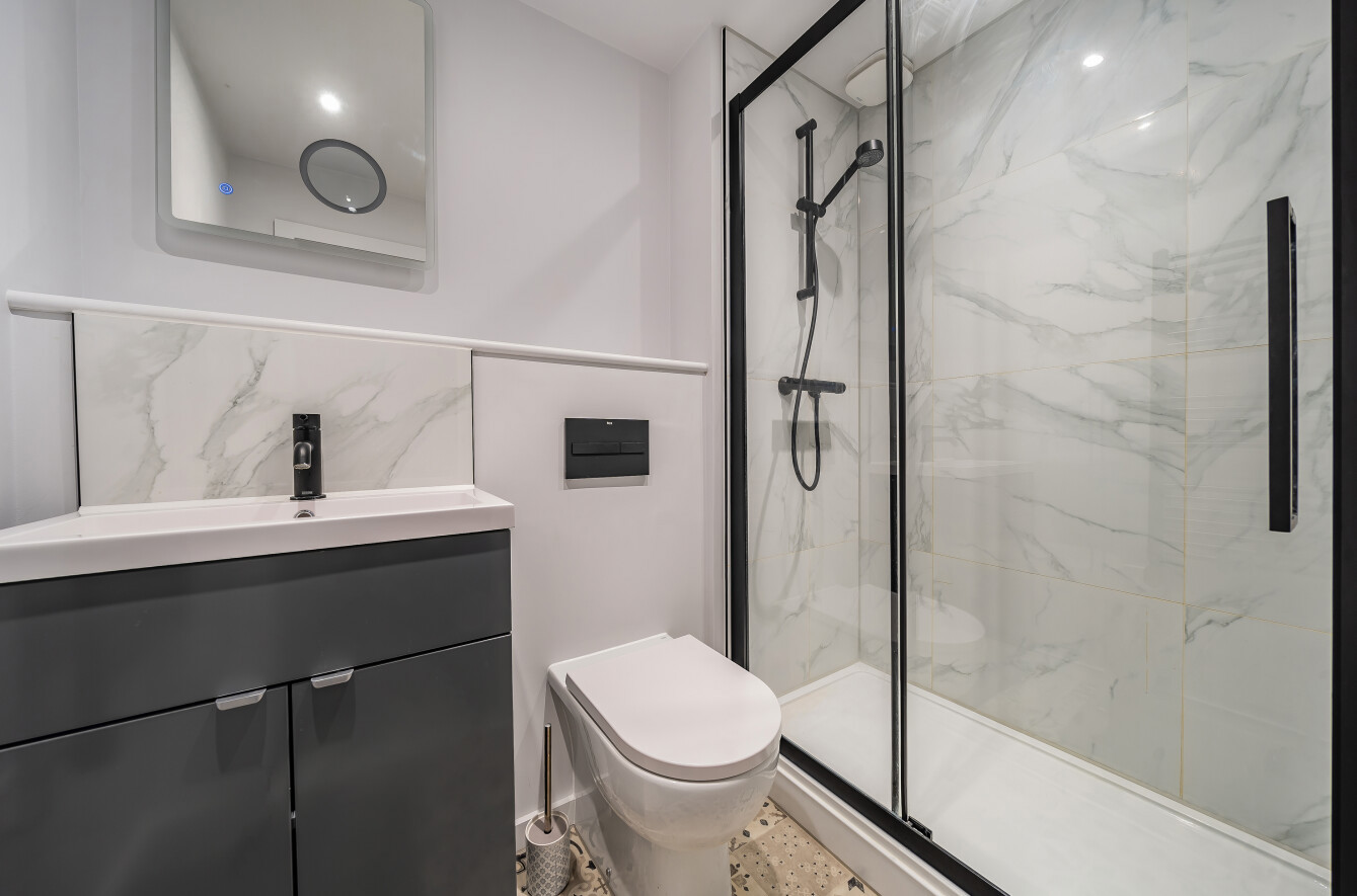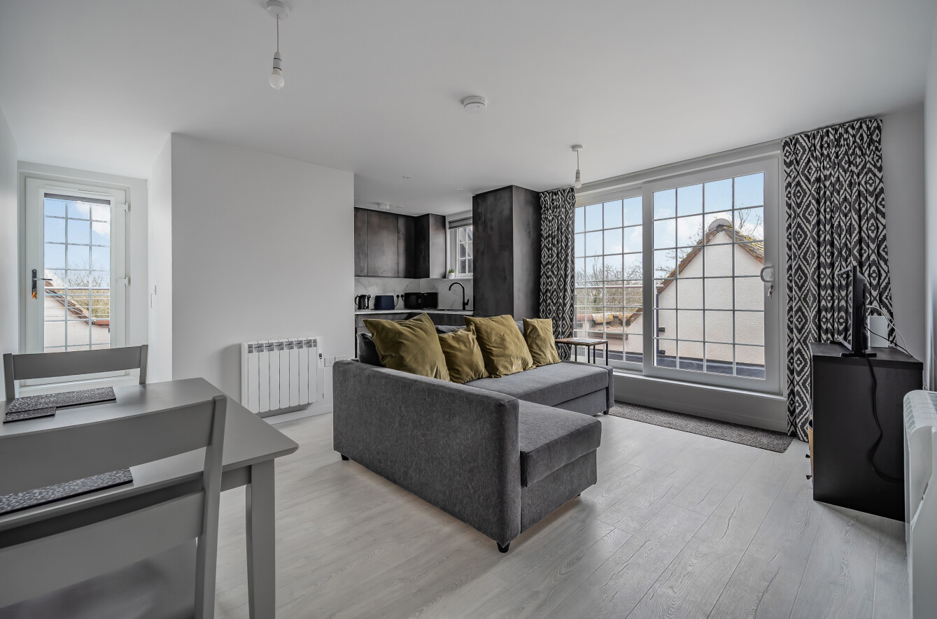 The apartment benefits from a wrap-around private terrace giving superb views across the city. Built to the latest high-efficiency building regulations and with roof-mounted PV panels generating solar electricity, this apartment is perfect for the modern living requirements of outside space and low running costs.