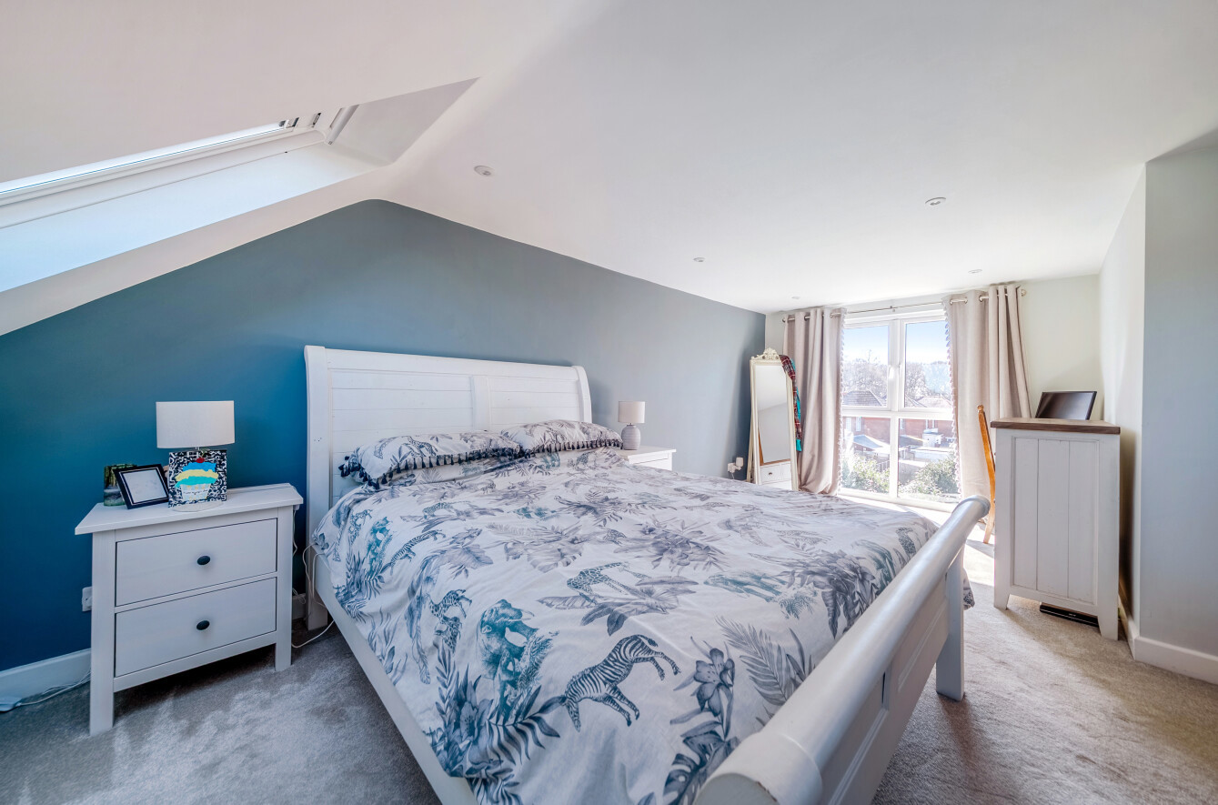 Occupying the second floor, the impressive principal suite provides exceptional space for furnishings and features a private en-suite shower room. Skylight windows frame attractive city views and enjoy a sunny southerly aspect, filling the room with natural light.