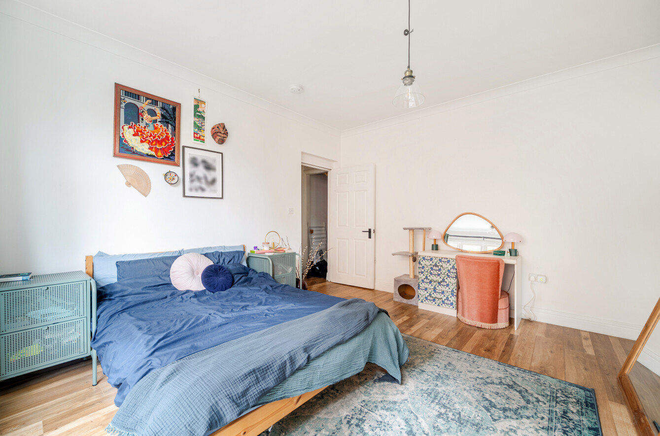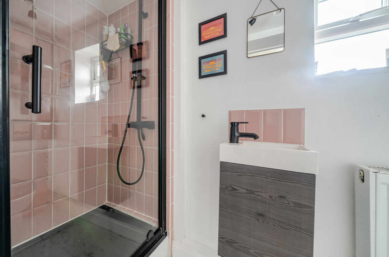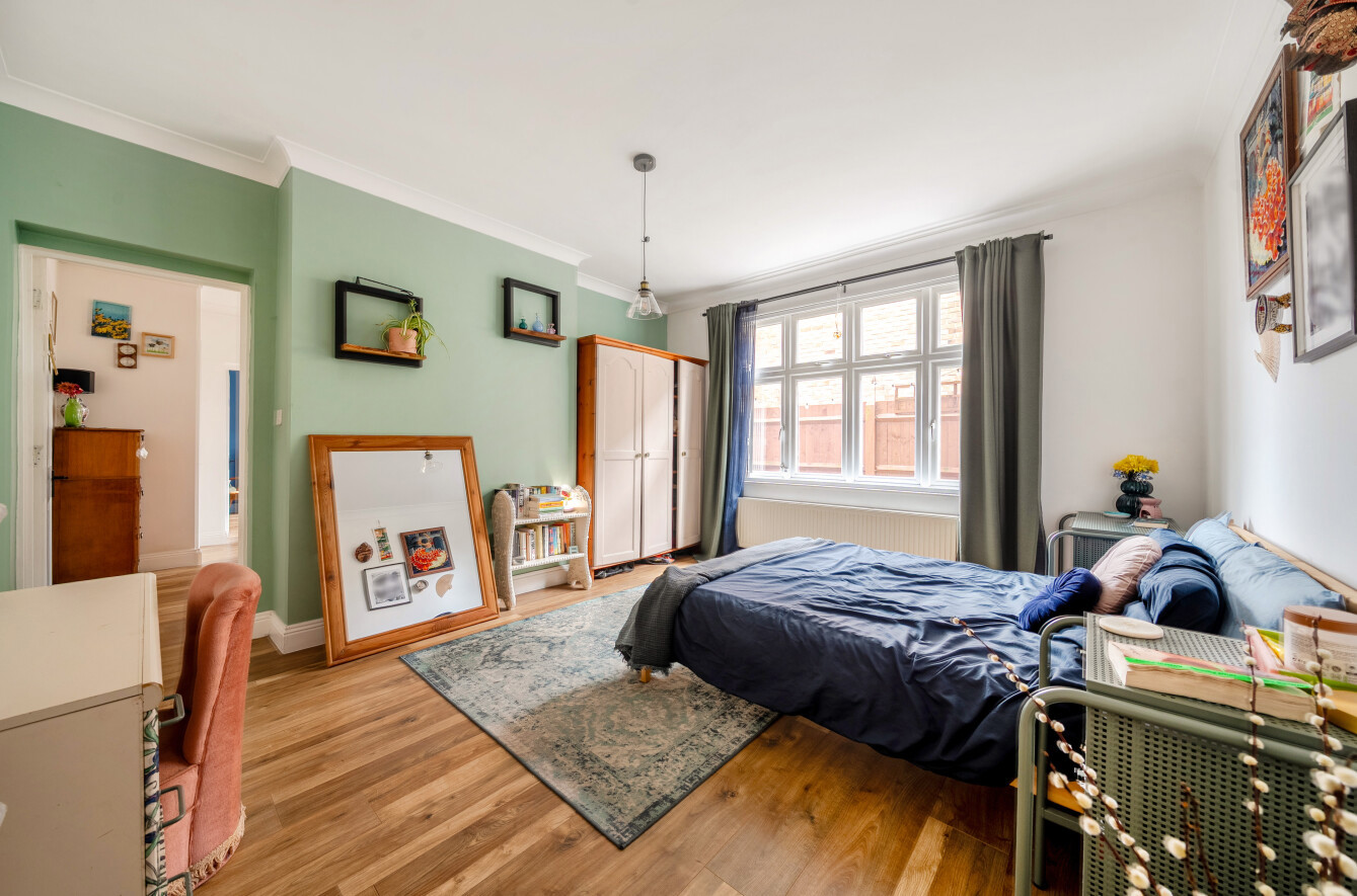 The generously sized accommodation can be accessed via the communal entrance or a private side door. Internally, the apartment features an entrance hallway with a deep and practical recess, perfect for storage. Doors lead to a spacious double bedroom, which could alternatively serve as a sitting room, a stylish kitchen/breakfast room, and a further reception room to the rear that could also be used as a bedroom. A sleek, modern shower room is accessed from this rear room.