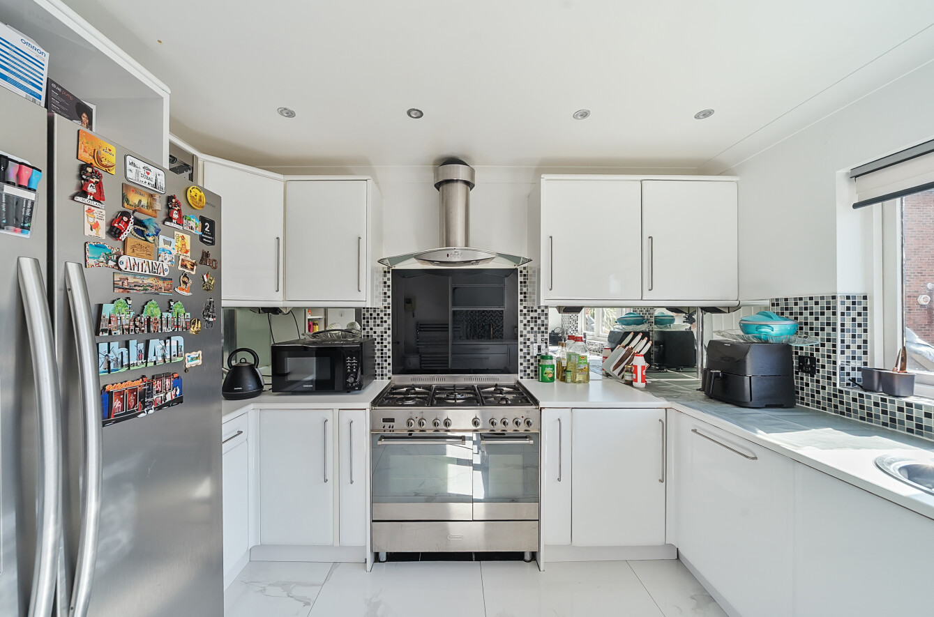The kitchen is also a generous size with ample modern white gloss units and space for a gas range style cooker. The second floor continues to impress, offering two double bedrooms, with the principal bedroom boasting a bay window, juliet balcony and a recently upgraded three-piece shower room.