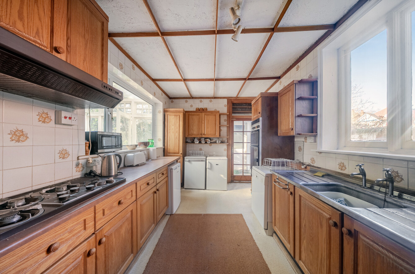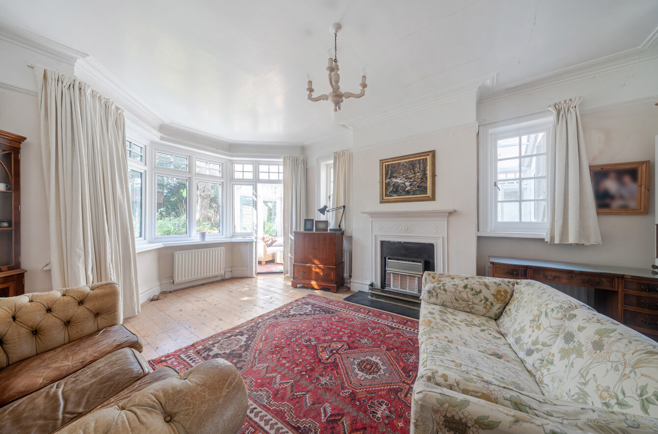 This rare opportunity will appeal to purchasers seeking a spacious house of enviable proportions that requires modernisation and improvement but is offered for sale with no forward chain. The accommodation comprises a hallway with a cloakroom and separate coats cupboard while double doors on the left lead to the front aspect study. The other large reception room found on the right also has a front view. The additional sitting room has a side bay window and a door leads to the sizeable conservatory offering views of the garden and requires updating. Double doors from the sitting room lead to the dining room that is also approached from the hallway with a utility room and louvre doors link to the kitchen that would benefit from replacement.