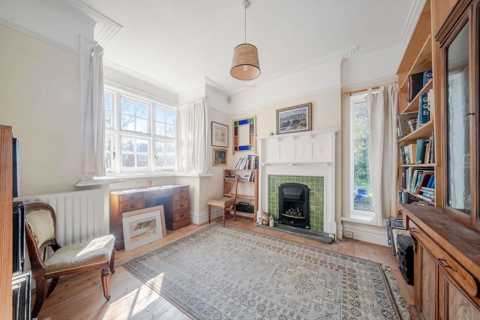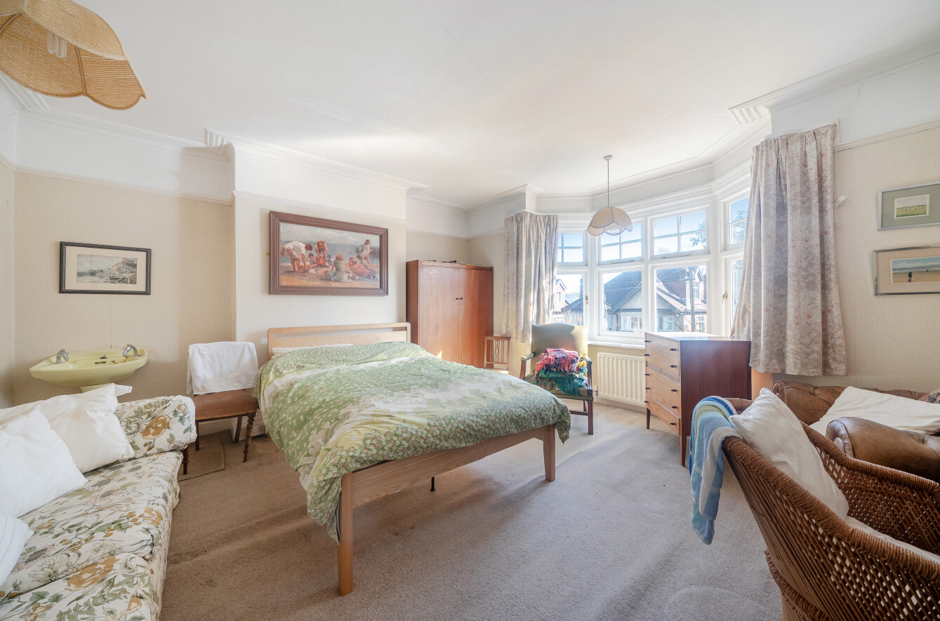 On the first floor the landing has a loft hatch allowing access to the sizeable loft that, subject to the necessary consents, has exciting scope for conversion. The main bedroom has stripped floorboards, a corner bay window and an en-suite shower room. Bedroom two is a generous double while three further bedrooms are served by a sizeable bathroom.