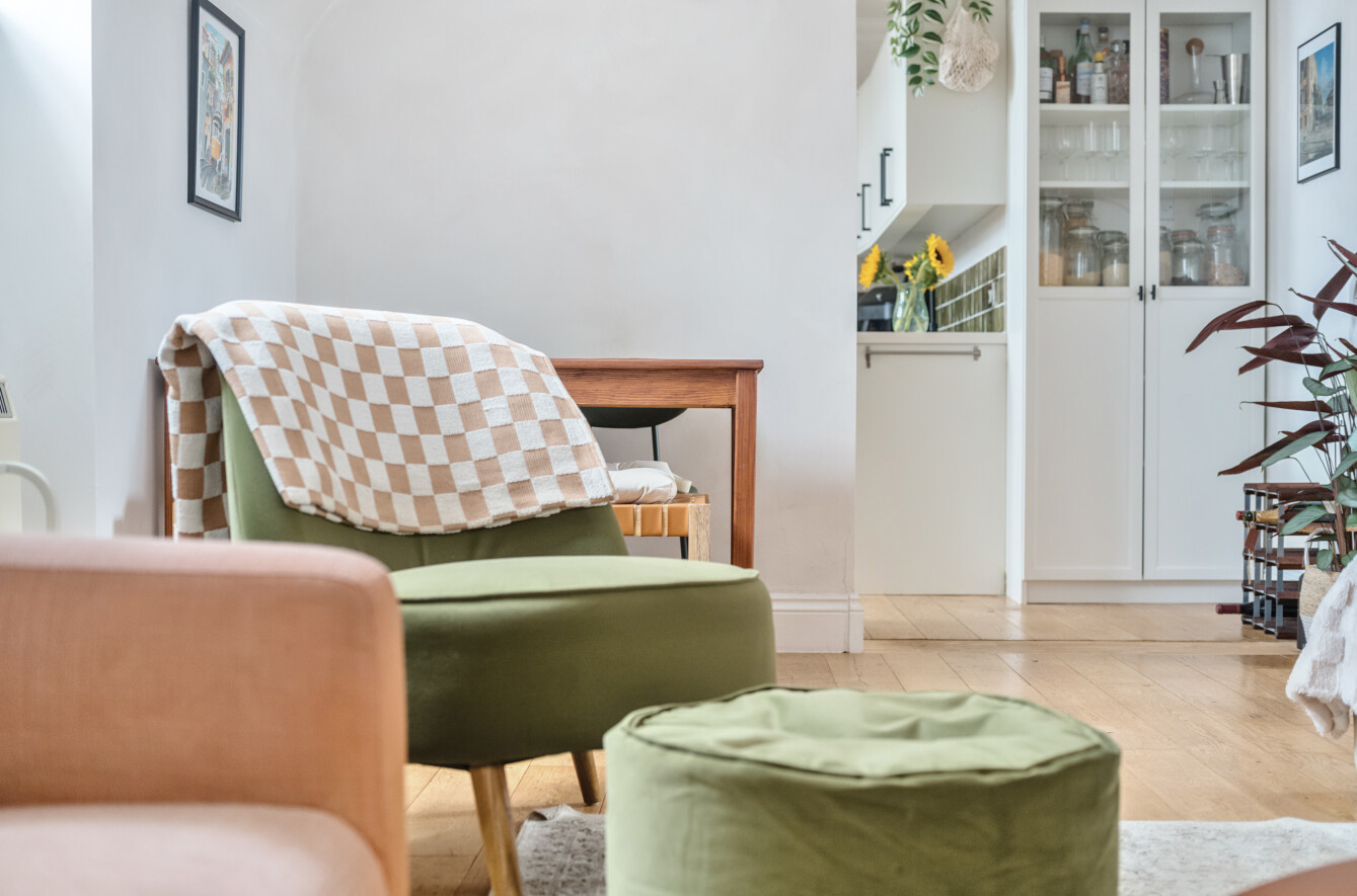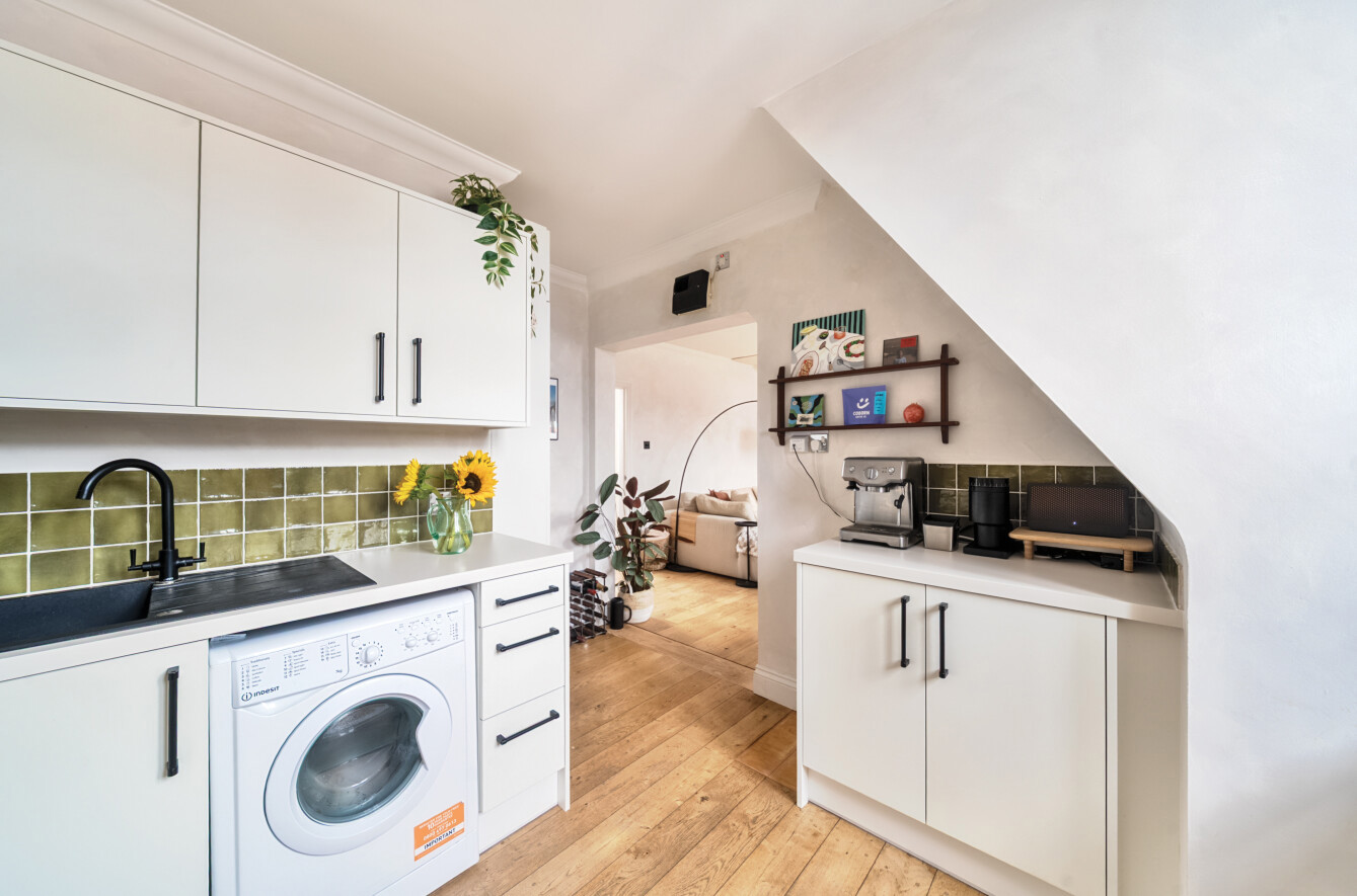 Knocked through a wall to create an open plan kitchen/living room.