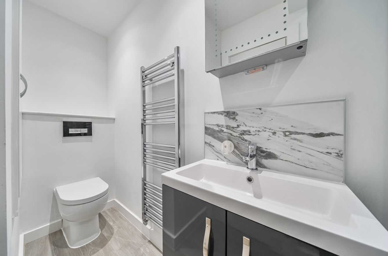 There is an inner hallway with further additional storage and a door leading to the large double bedroom with en-suite shower room. In addition, the property benefits from a small private patio area just outside the flat, which is fenced and offers a pleasant spot for outdoor seating. There is also a secure storage area/bike shed located on the floor below the flat, providing convenient additional space.