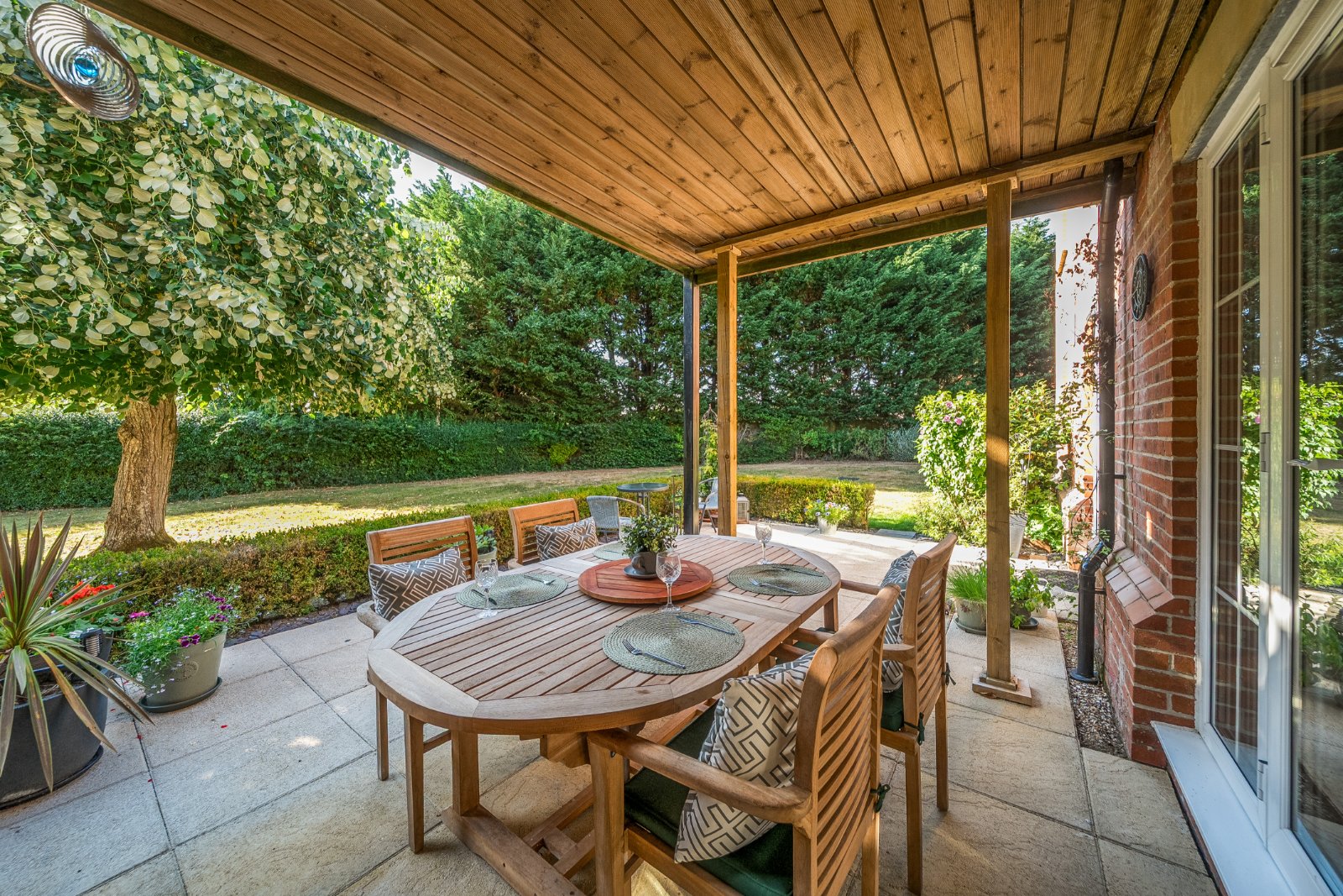 Automatic gates with an entry phone allow access to the garage with loft storage and a parking space in front and visitors parking is available. There are mature shrubs and trees while the residents' rotunda has an adjacent gas & hot coals barbecue are that is ideal for relaxing on sunny days & warm evenings.