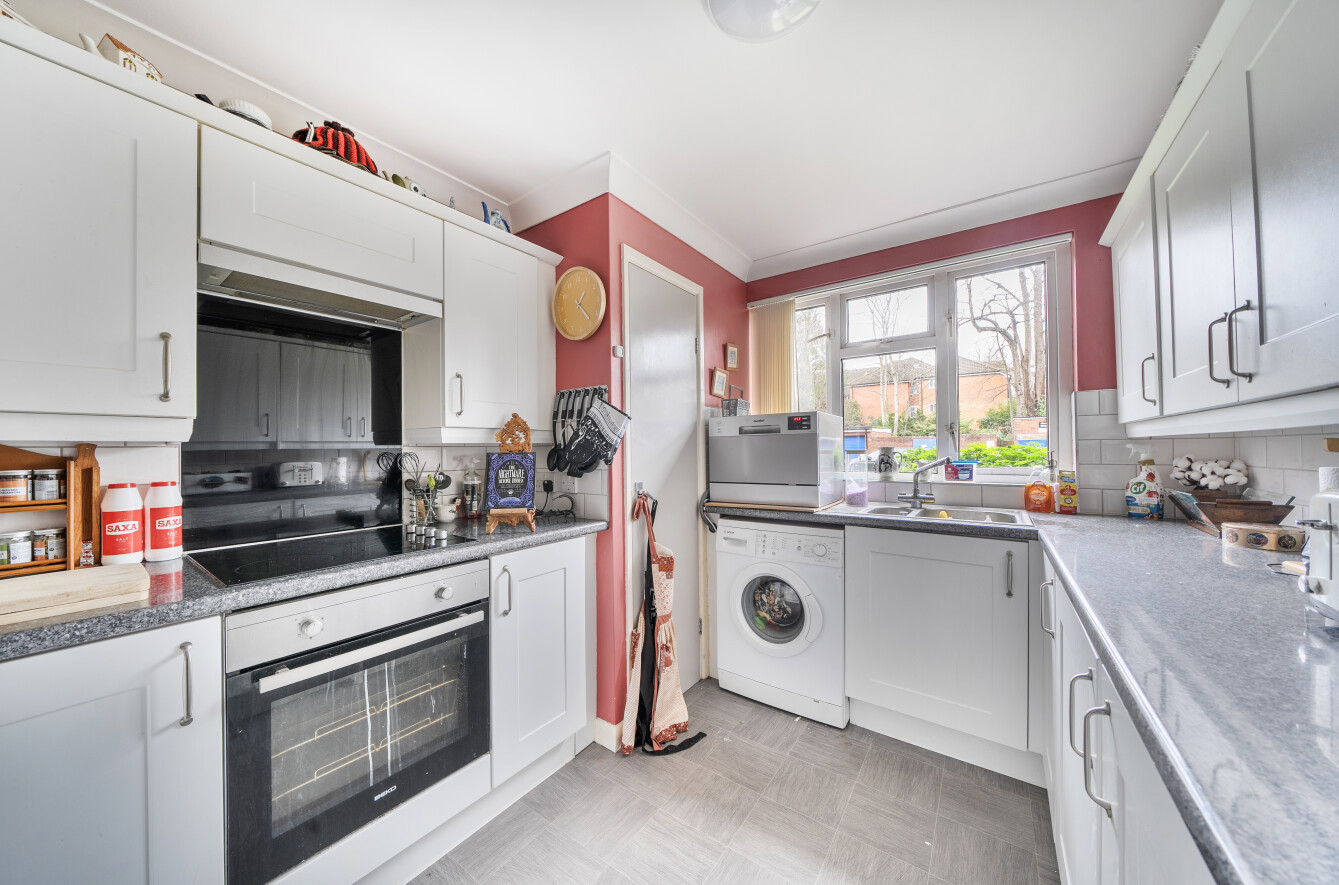 Adjacent to the living room is a fitted kitchen, offering a range of wall and base units along with ample space for appliances.