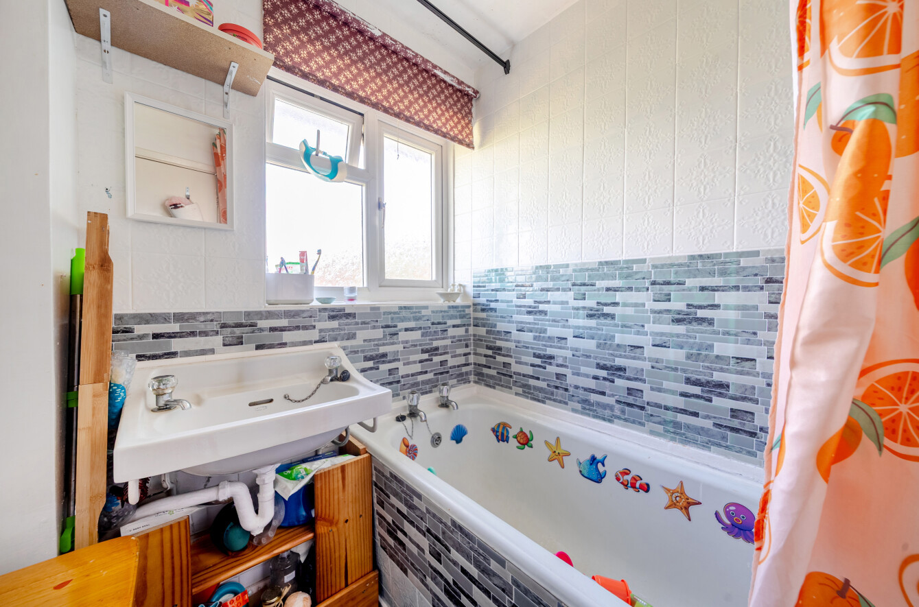 Upstairs, the landing provides access to the loft and three well-sized bedrooms, two generous doubles and a third with built-in storage. These are served by a family bathroom and separate WC.
