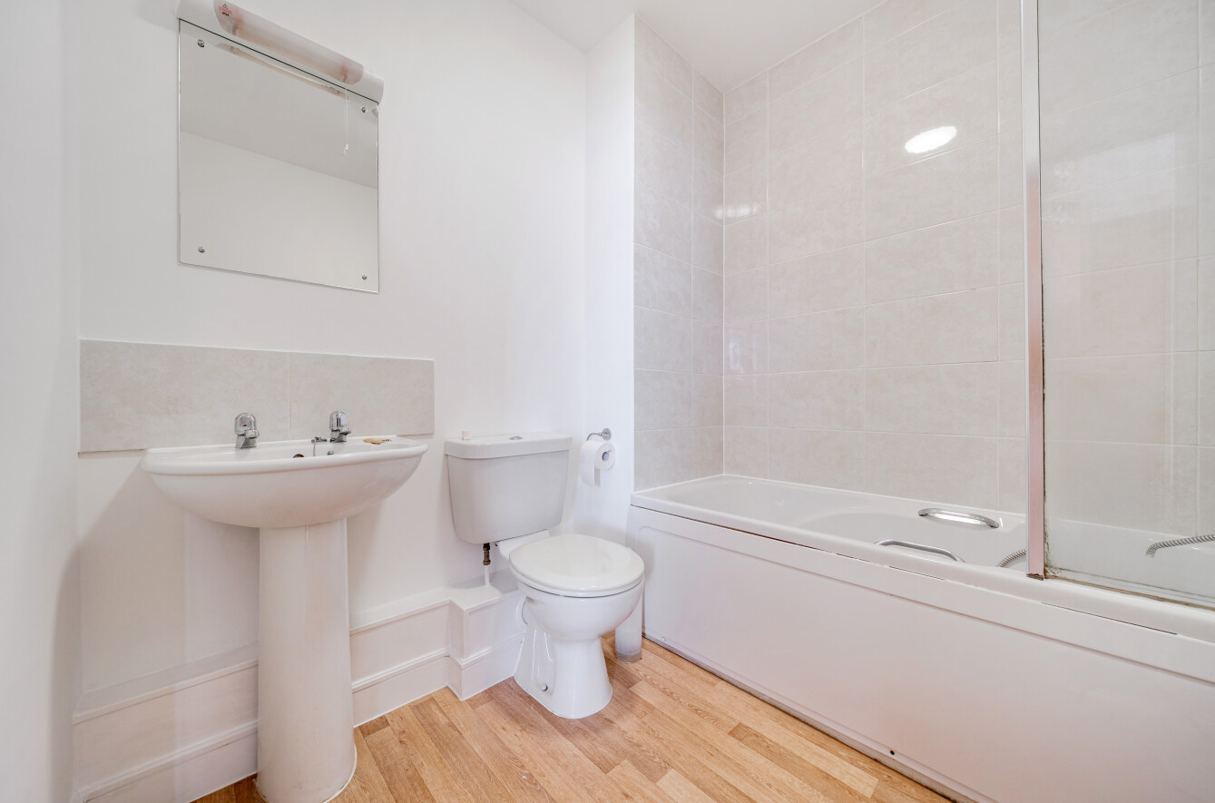 The family bathroom boasts a contemporary three-piece suite comprising a panelled bath, low level W.C. and pedestal sink.
