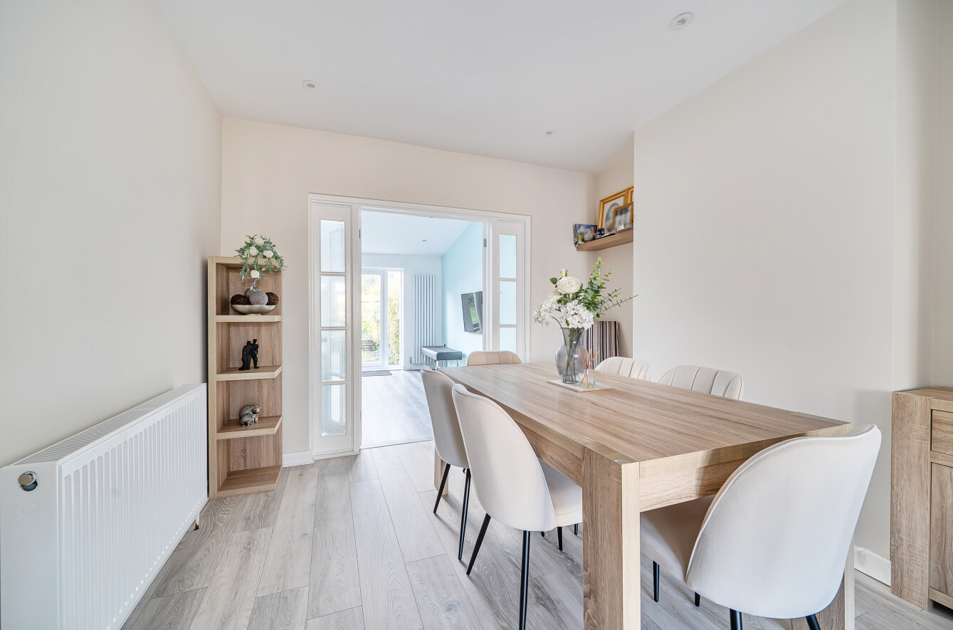 Outside, the home enjoys off-road parking and convenient side access to the rear. The private, enclosed garden features a paved seating area for outdoor dining, with the rest laid mainly to lawn.