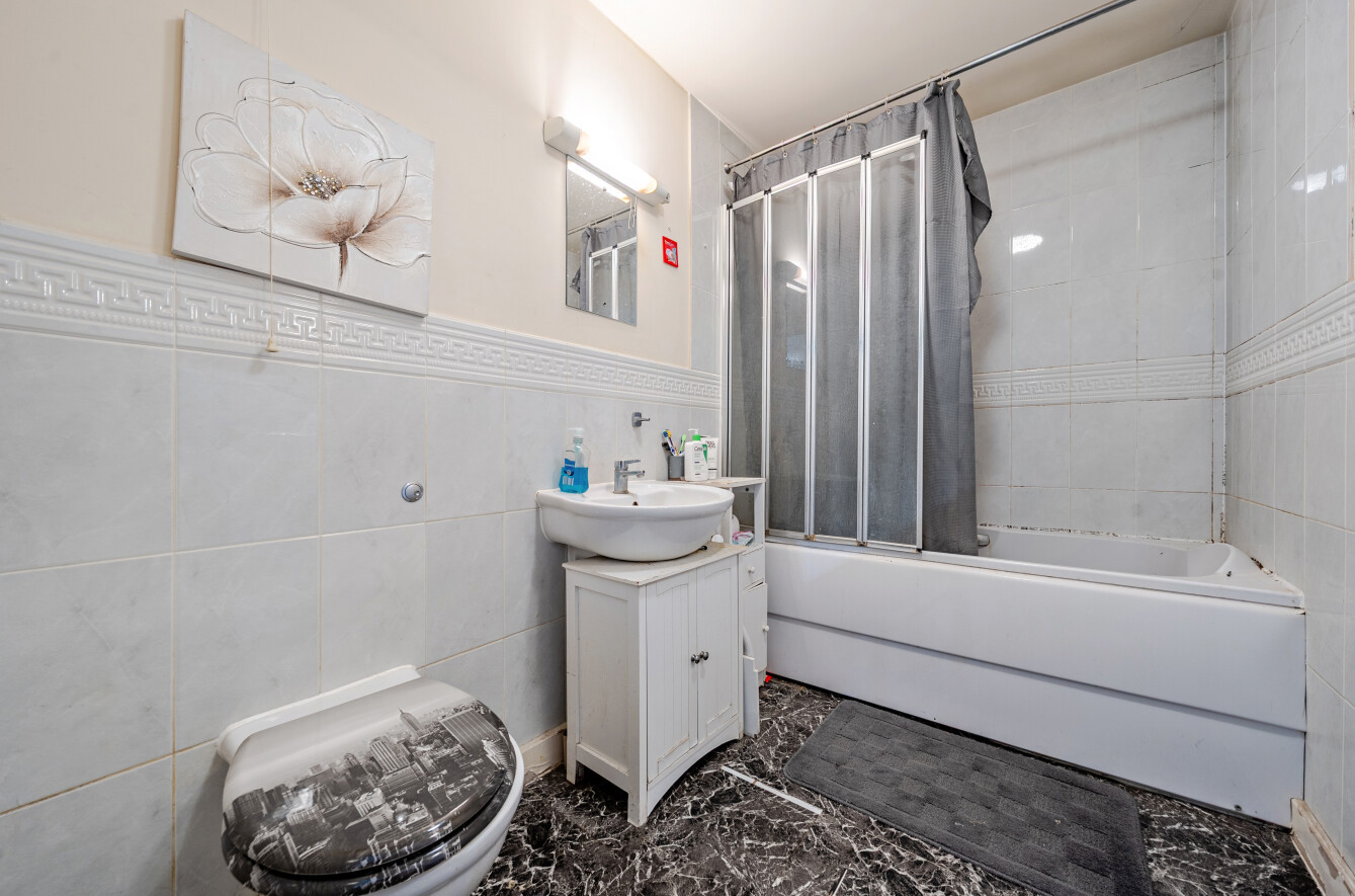 Upstairs, the first floor hosts two well-proportioned bedrooms overlooking the front and rear of the property, along with a stylish family bathroom fitted with a three-piece suite including a panelled bath, concealed-cistern W.C., and pedestal wash basin.