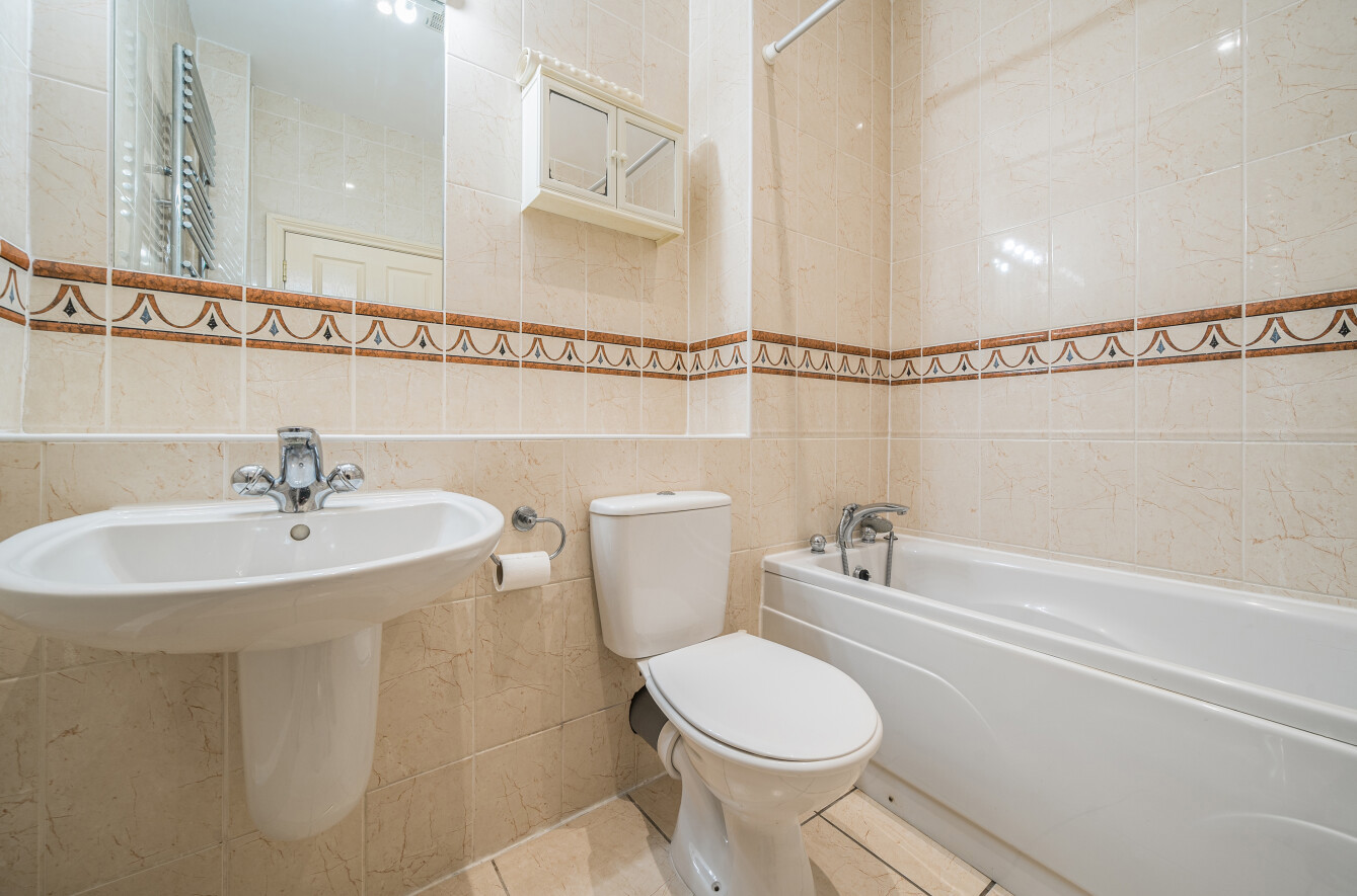 Downstairs, you’ll find two well-proportioned double bedrooms, each with fitted wardrobes providing ample storage. The principal bedroom enjoys a stylish en-suite shower room, while a modern family bathroom serves the second bedroom, featuring a three-piece suite with a panelled bath, low-level W.C., and pedestal wash basin.