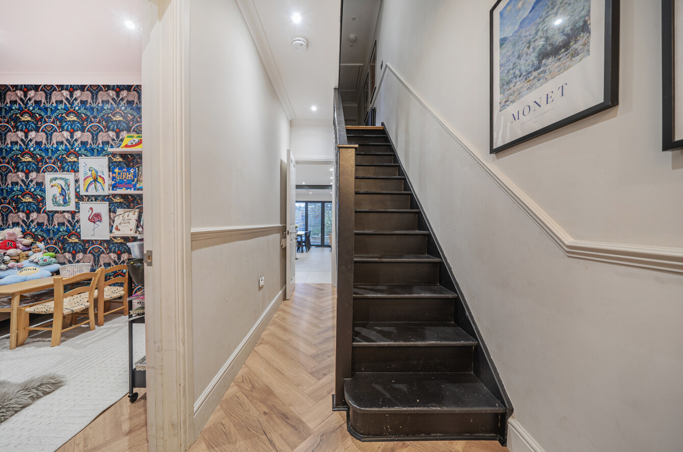 The favourably laid out and stylishly presented ground floor accommodation on the ground floor comprises the entrance hallway with doors leading to the sitting room to the front of the home, the stunning open plan kitchen dining and family room with bi fold doors taking you to the rear garden and also providing access to an inner hallway which in turn leads to the always handy downstairs WC cloakroom with utility cupboard and the second reception room which makes for the ideal children’s play room.