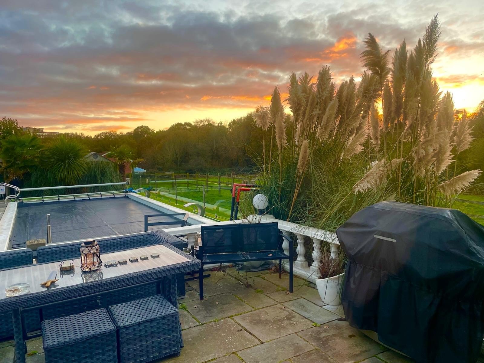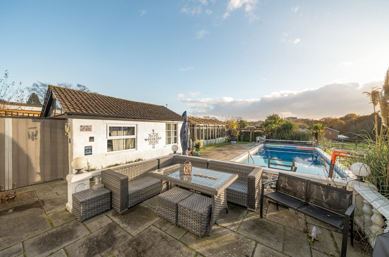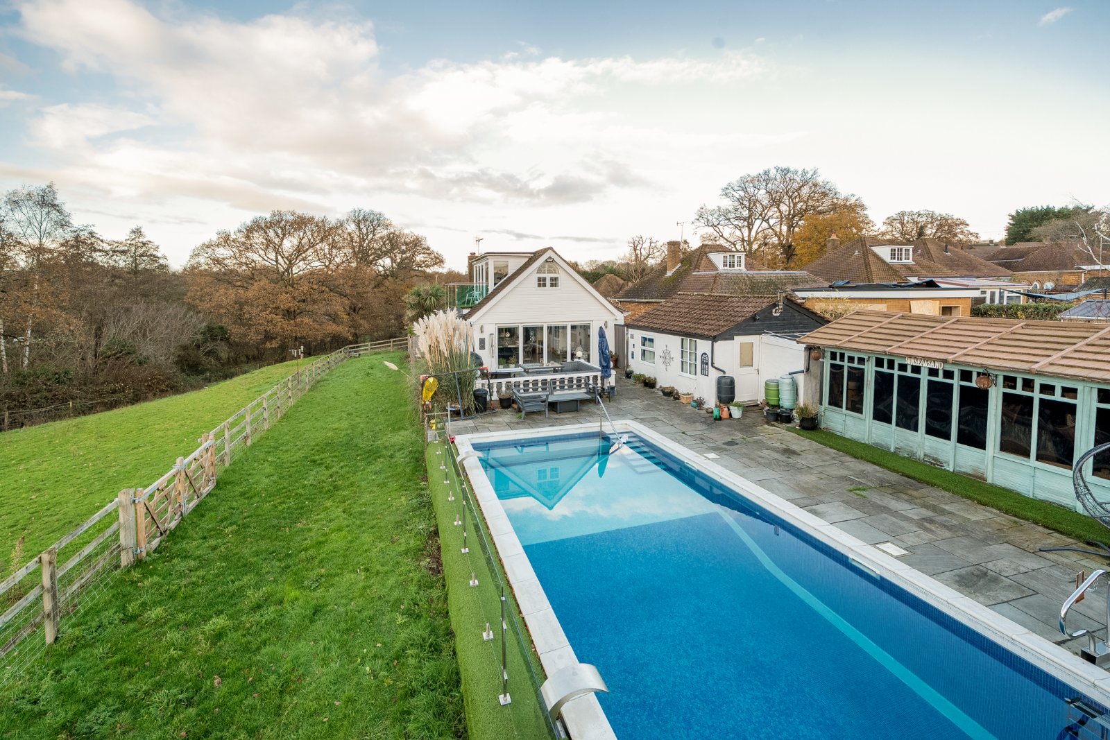 The sun-soaked rear garden provides the perfect setting for entertaining, with patio and lawn areas and a heated swimming pool, all overlooking neighbouring fields to enhance the feeling of being on holiday every day.