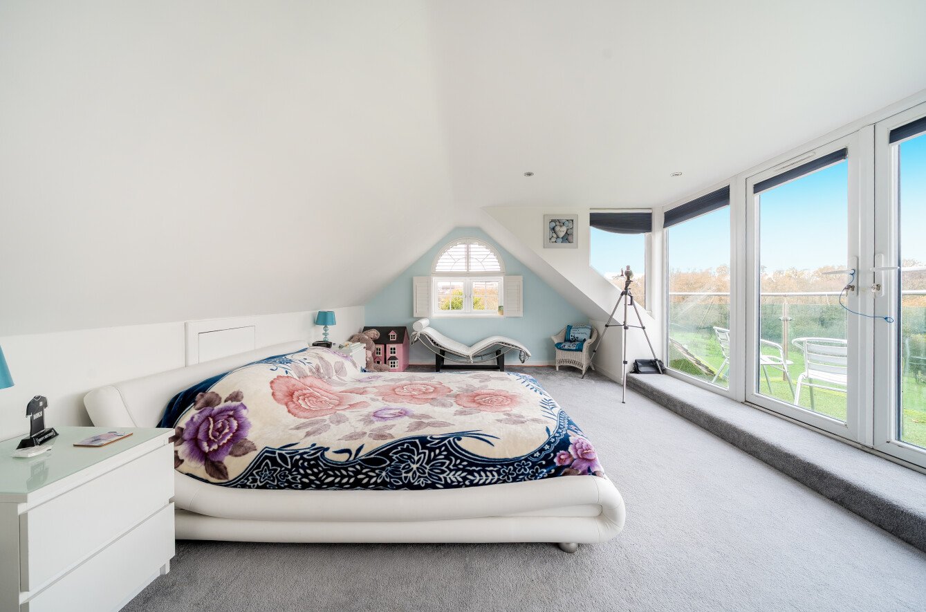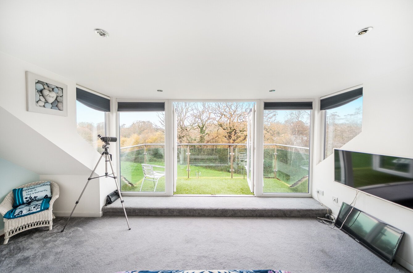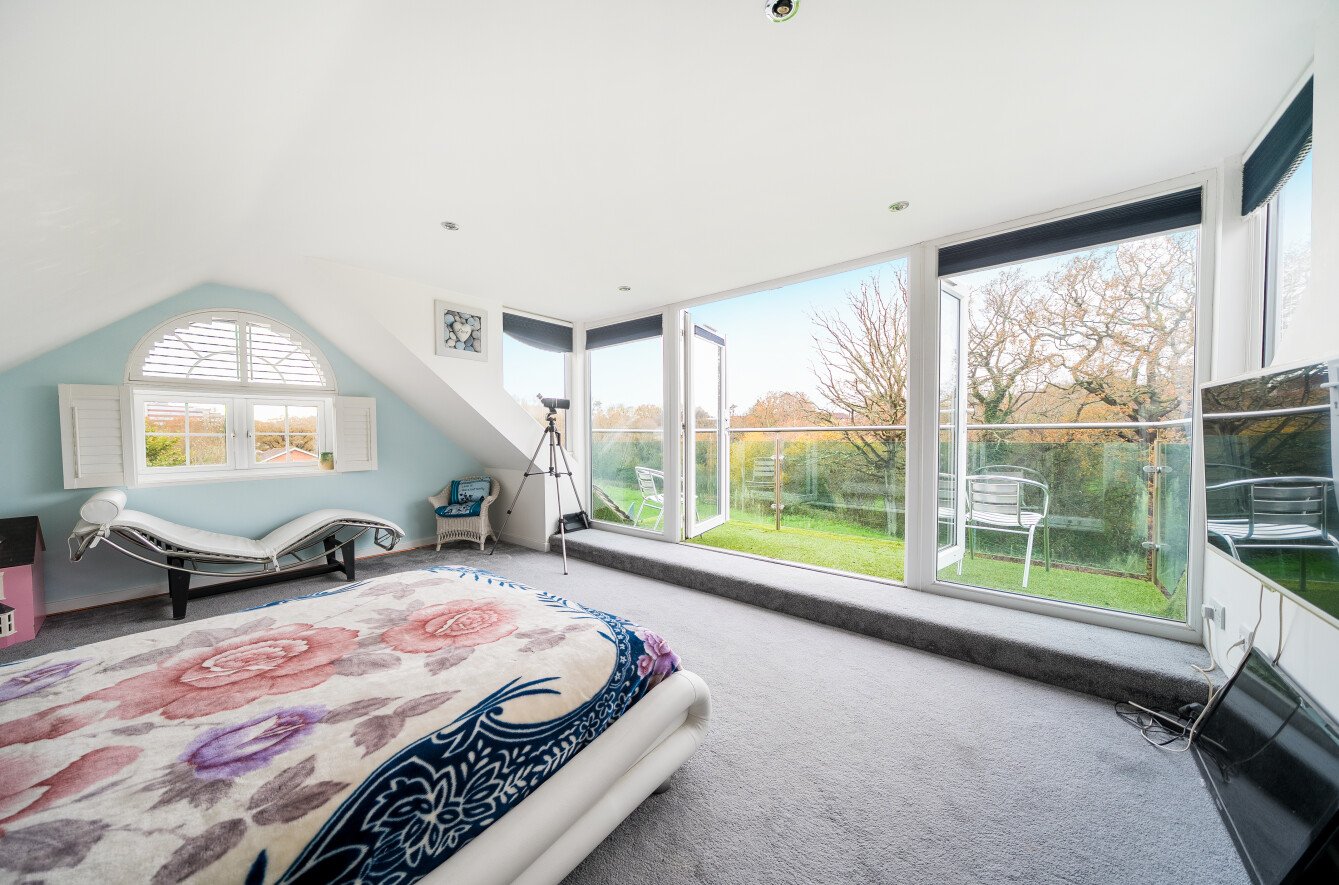 Upstairs, the principal bedroom offers a private balcony with delightful views, along with a contemporary en-suite shower room.