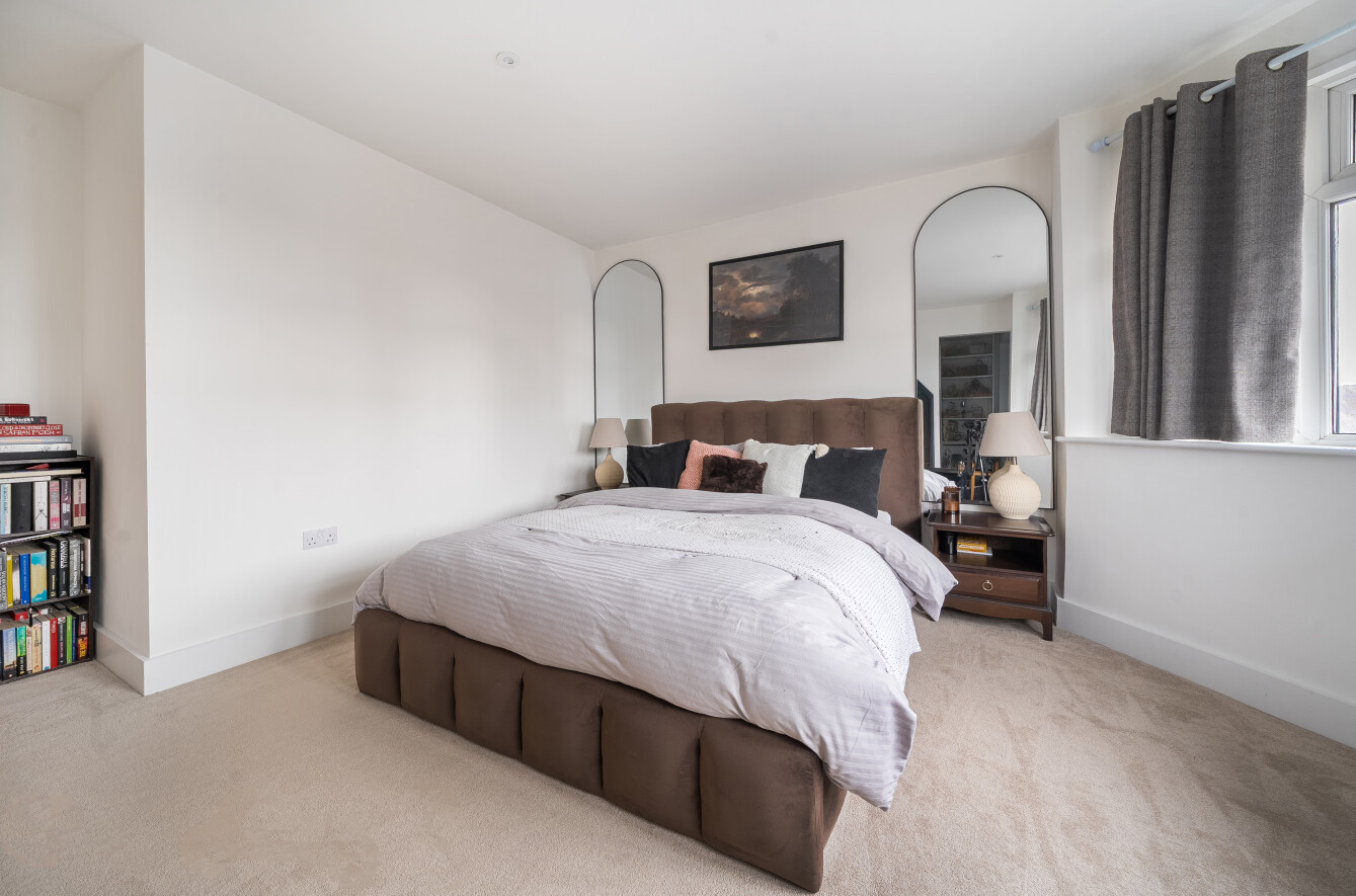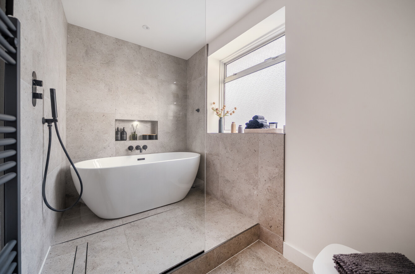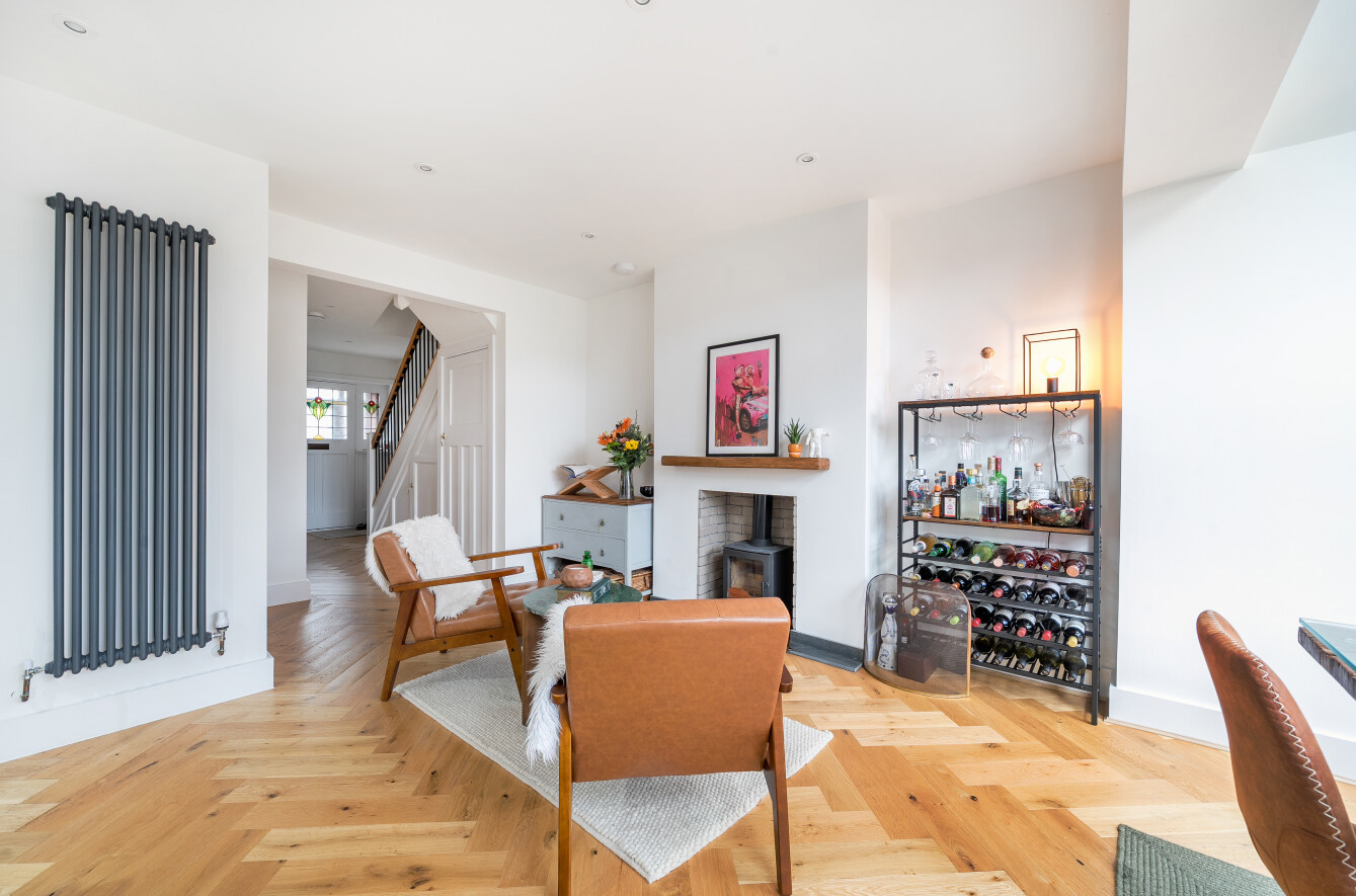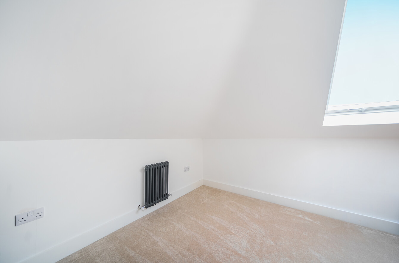 Again the room benefits from oak flooring and log burning stove. There are also the handy additions of a walk in pantry and a downstairs WC. The first floor of the home houses two double bedrooms and a single bedroom all of which are served by the sleek and stylish family bathroom. There is a further bedroom in the converted loft space which benefits from the use of an suite shower room.