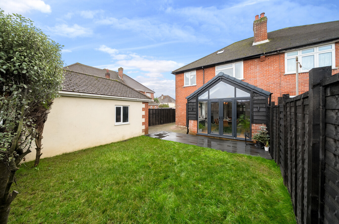 There is comfortable off road parking on the driveway with gated access to the rear garden with areas laid to composite decking and lawn as well as housing a detached garage.
