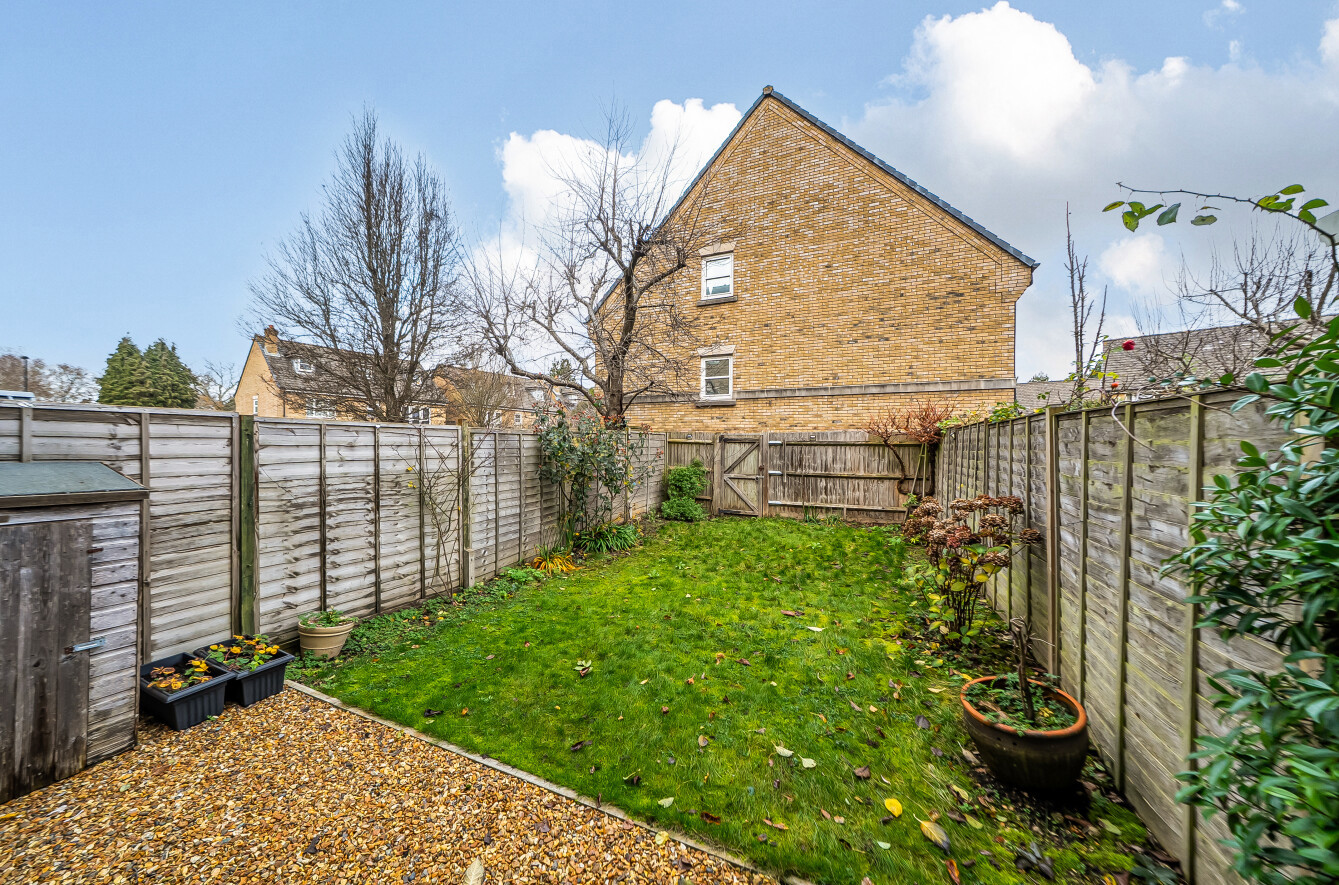 The rear garden is fully enclosed and primarily laid to lawn, complemented by a spacious patio area and convenient rear access.