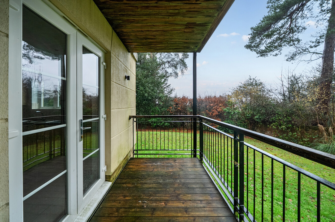 The modern fitted kitchen/breakfast room is a particularly impressive space, offering direct access to a private balcony overlooking the well-maintained communal gardens. The kitchen is well-appointed with a range of fitted units and integrated appliances, including an oven, hob, extractor fan, fridge/freezer, washer/dryer, and dishwasher.