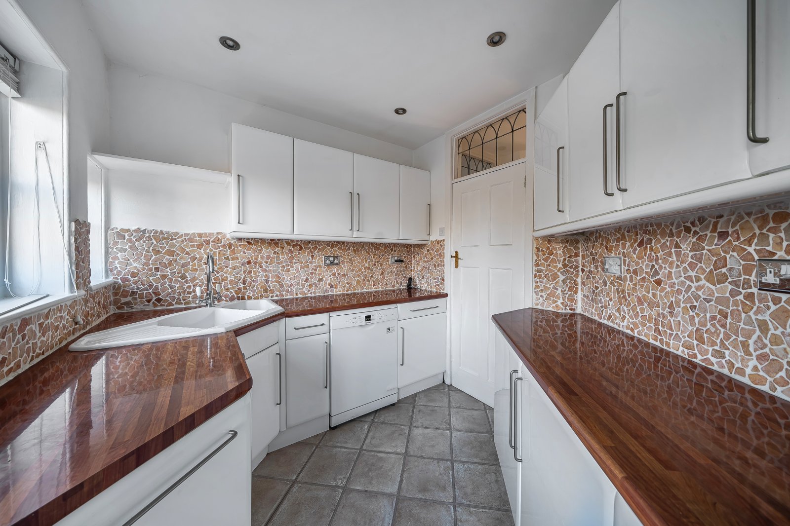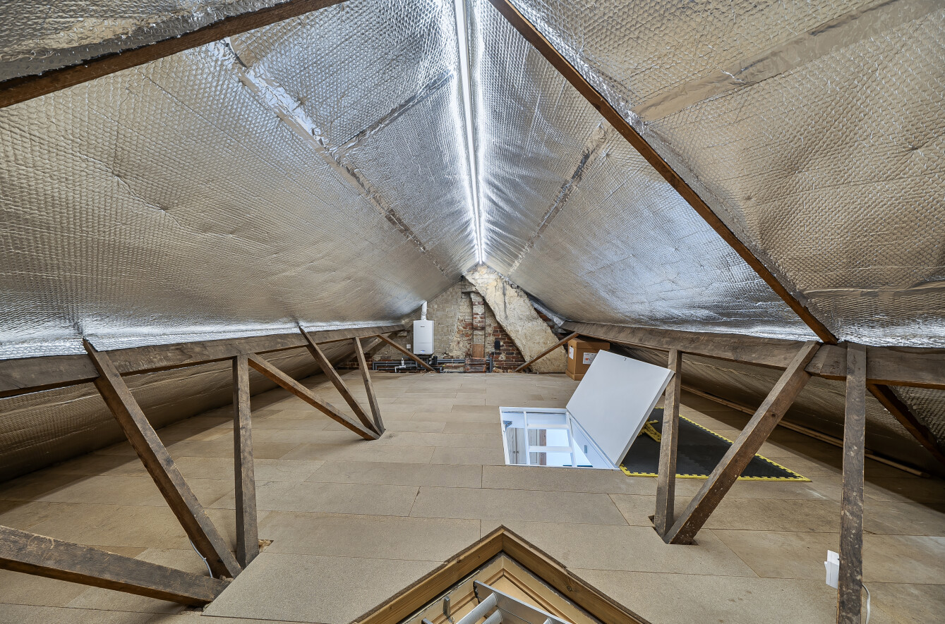 Accessed on the first floor, the apartment opens into a spacious central hallway providing access to all principal rooms. The accommodation comprises two well-proportioned bedrooms, both positioned to the rear of the building and flooded with natural light through large sash windows. The open-plan living room is undoubtedly a standout feature of the property, benefitting from two fitted double cupboards and access to a generous fully boarded, insulated and heated loft, providing excellent storage potential. The fitted kitchen offers a range of wall and base units with wood-effect work surfaces, complemented by a ceramic sink with mixer tap and a selection of integrated appliances. Completing the accommodation is the family bathroom, which is fitted with a three-piece suite comprising a panelled shower bath, low-level WC, and wash hand basin with storage around. Additional benefits include gas central heating, double glazing, and ample residents’ parking.