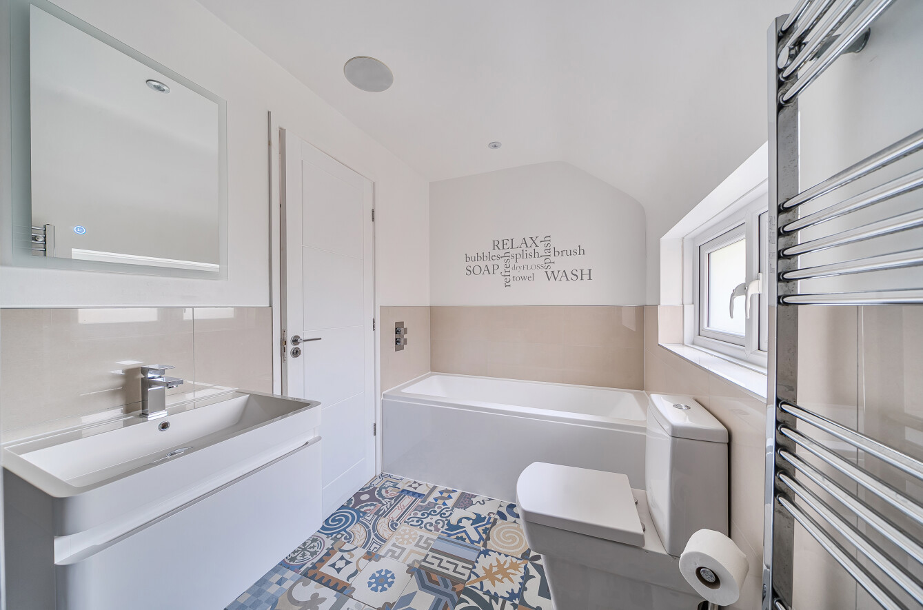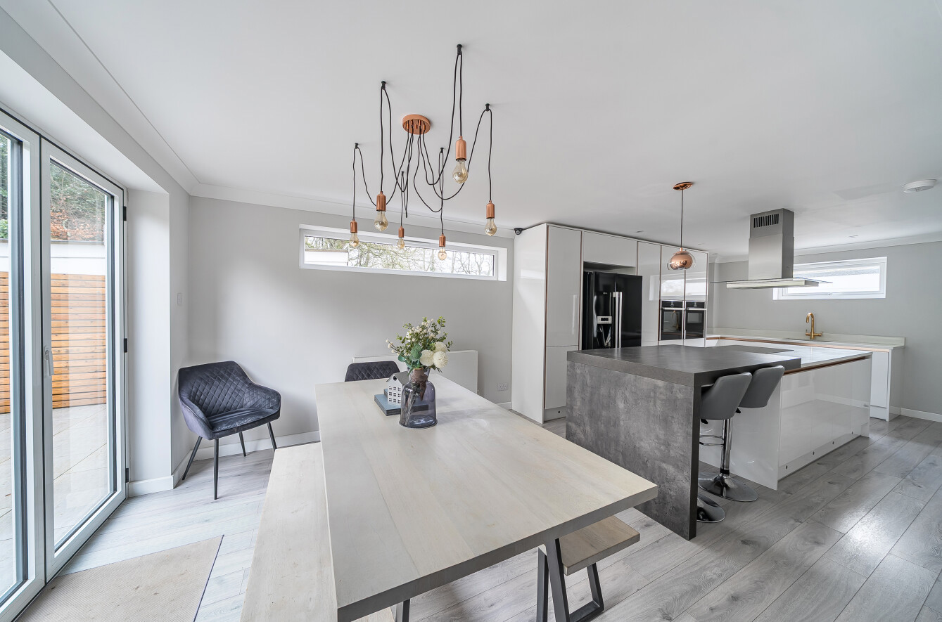 The entrance hall creates a warm welcome and has a cloakroom with stairs ascending to the first floor. On the left is the study/home office and a door leads to the utility room. The outstanding feature of the interior is the superb open plan kitchen/dining room that must be seen to be appreciated. A quality range of wall and base units are adorned with granite work surfaces and incorporate a breakfast bar. There is ample space for a table and chairs while bi-fold doors offer an attractive view to the garden. An open aspect to the lounge creates the perfect social environment for family and friends to relax in and there is a log burner that is a cosy focal point for the room. The sitting room beyond is a useful additional space that is suitable for a number of purposes. On the first floor there are five individually designed bedrooms served by a stylish, well-appointed family bathroom. The principal bedroom boasts double doors with a Juliet balcony and glass panels overlooking the garden. A centrally placed bedhead partition separates the dressing area and a door here opens to the impressive en-suite shower room.