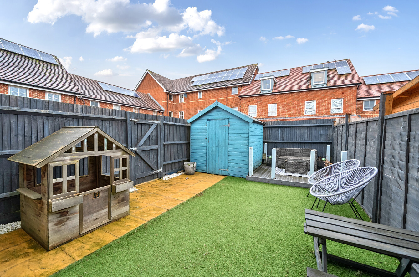 Further benefits include driveway parking to the front and a private, enclosed, low-maintenance rear garden featuring patio areas, artificial lawn, and a raised decked seating area.