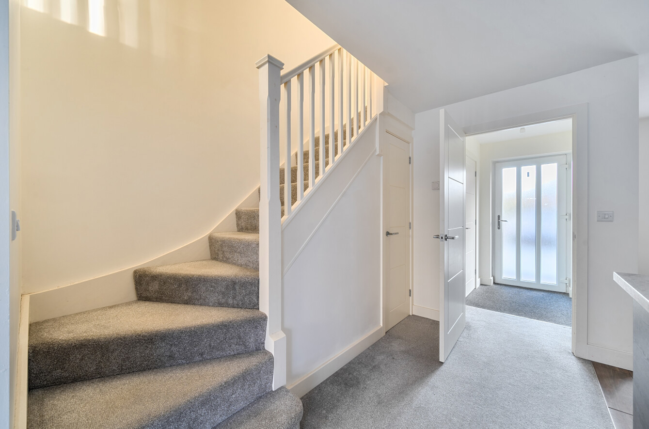 Upstairs, the first floor offers three well-proportioned bedrooms. The master bedroom is particularly spacious and benefits from fitted wardrobes and a stylish en-suite shower room.
