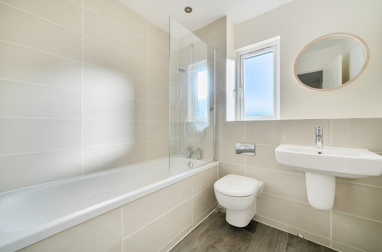 A contemporary family bathroom completes the accommodation, featuring a panelled bath, concealed-cistern W.C. and semi-pedestal wash hand basin, all complemented by tiled walls and flooring.