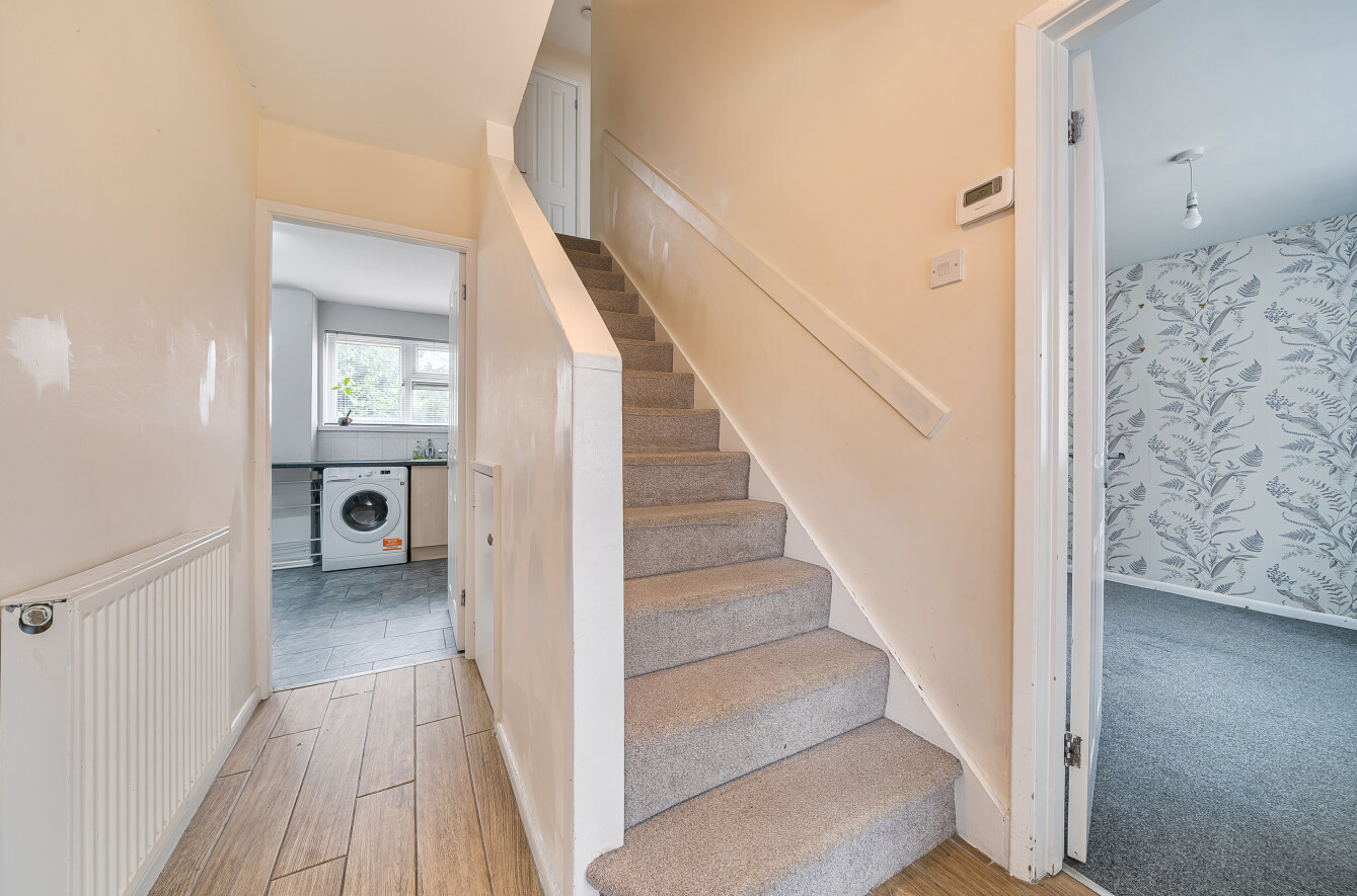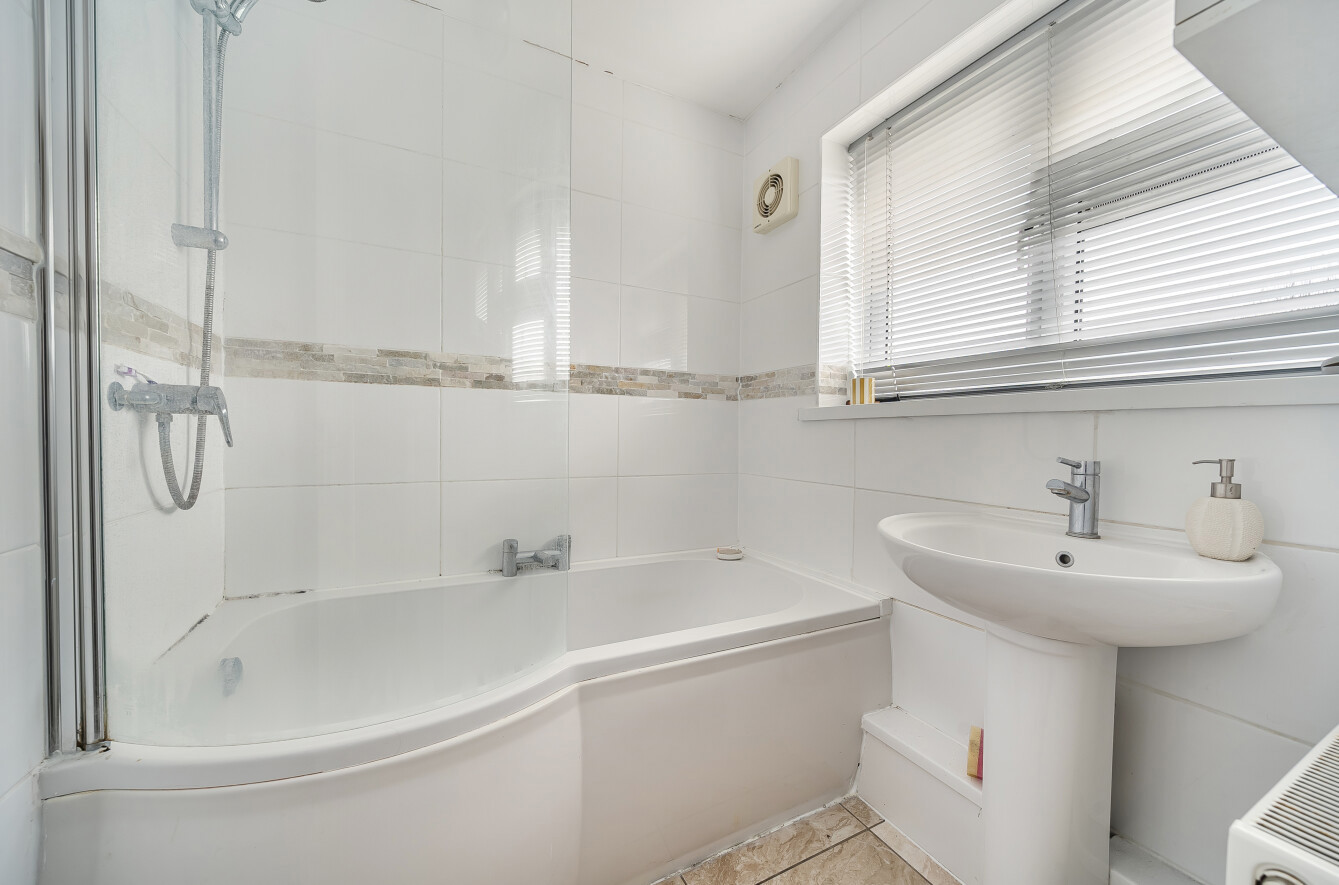 The first floor houses two double bedrooms and a third bedroom, all of which benefit from useful built-in storage, and are served by the family bathroom and separate WC.