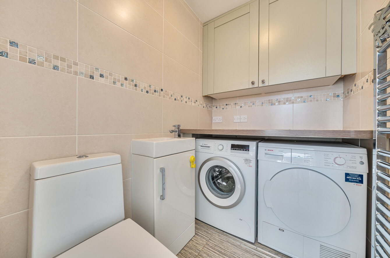 The property is accessed via a welcoming main entrance to the front, leading into a bright hallway. To the left, a practical cloakroom provides added convenience and cleverly doubles as a utility area, offering space for both a washing machine and tumble dryer.