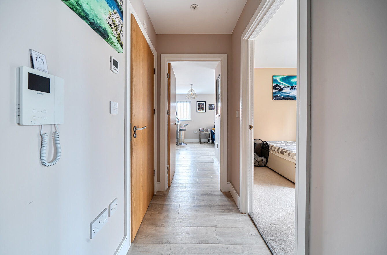 As you enter on the top floor, there are doors to your right leading to two spacious double bedrooms, both oozing natural light from full-height windows, whilst the master boasts a contemporary en-suite shower room.