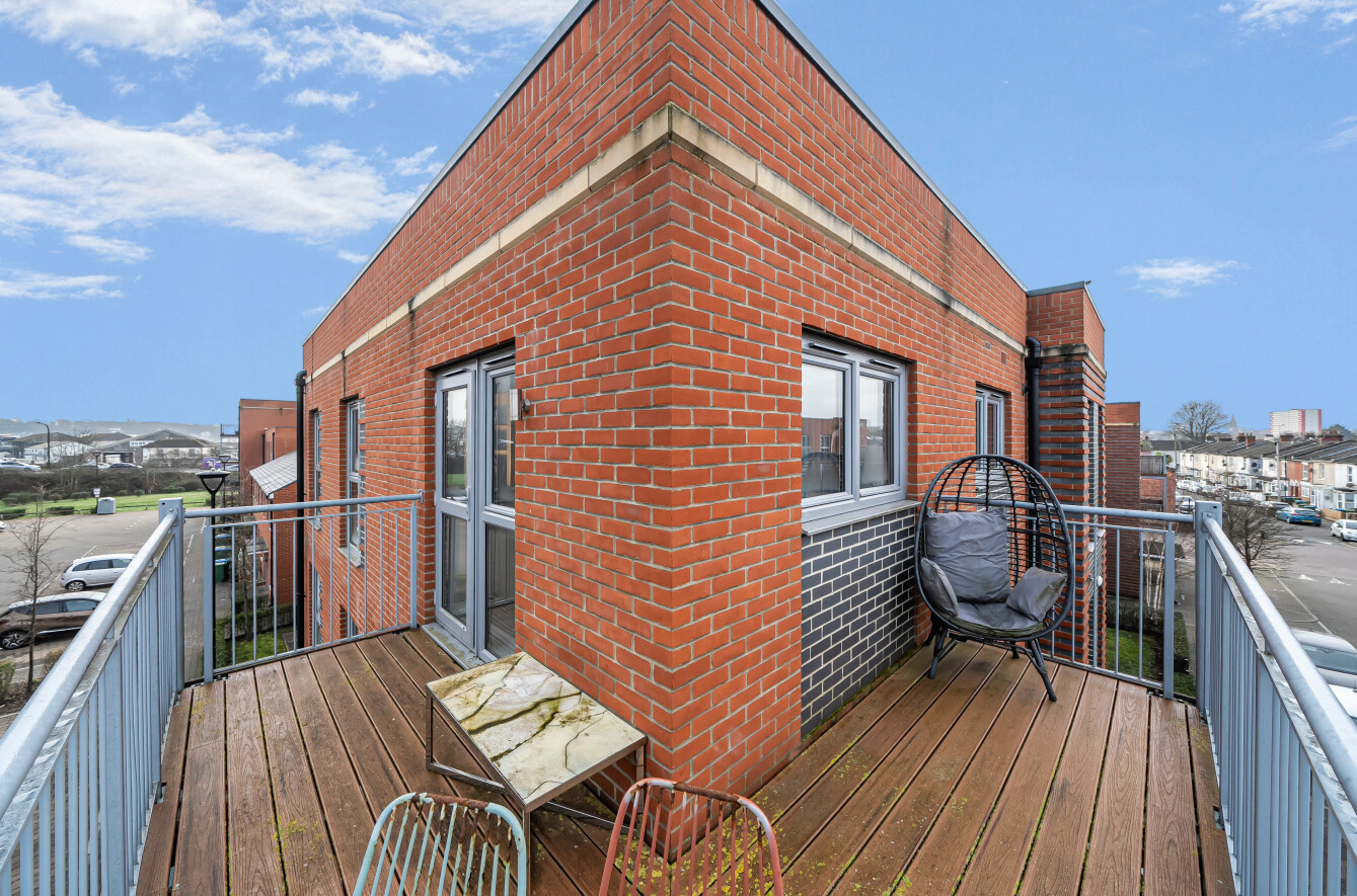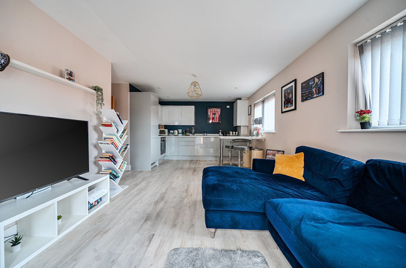 The standout feature of the apartment is undoubtably main living area, which offers direct access to an L-shaped balcony with water views. Adjacent to the living area there is a modern fitted kitchen, with a range of integrated appliances including oven, hob, extractor fan, fridge/freezer and dishwasher.