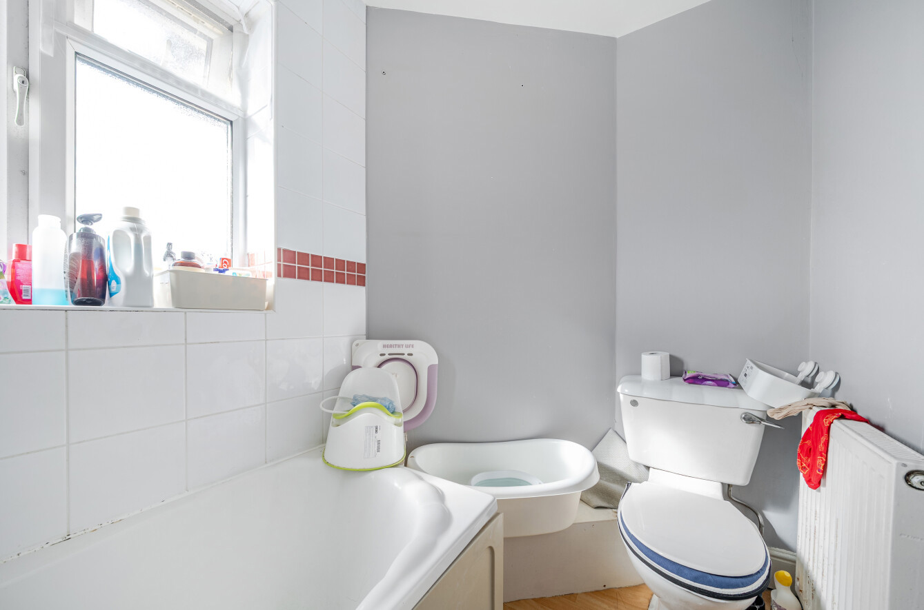 Moving upstairs there are two well-proportioned bedrooms, including a dual aspect master. There is also a modern family bathroom with three-piece suite comprising panelled bath, low level W.C. and pedestal sink.