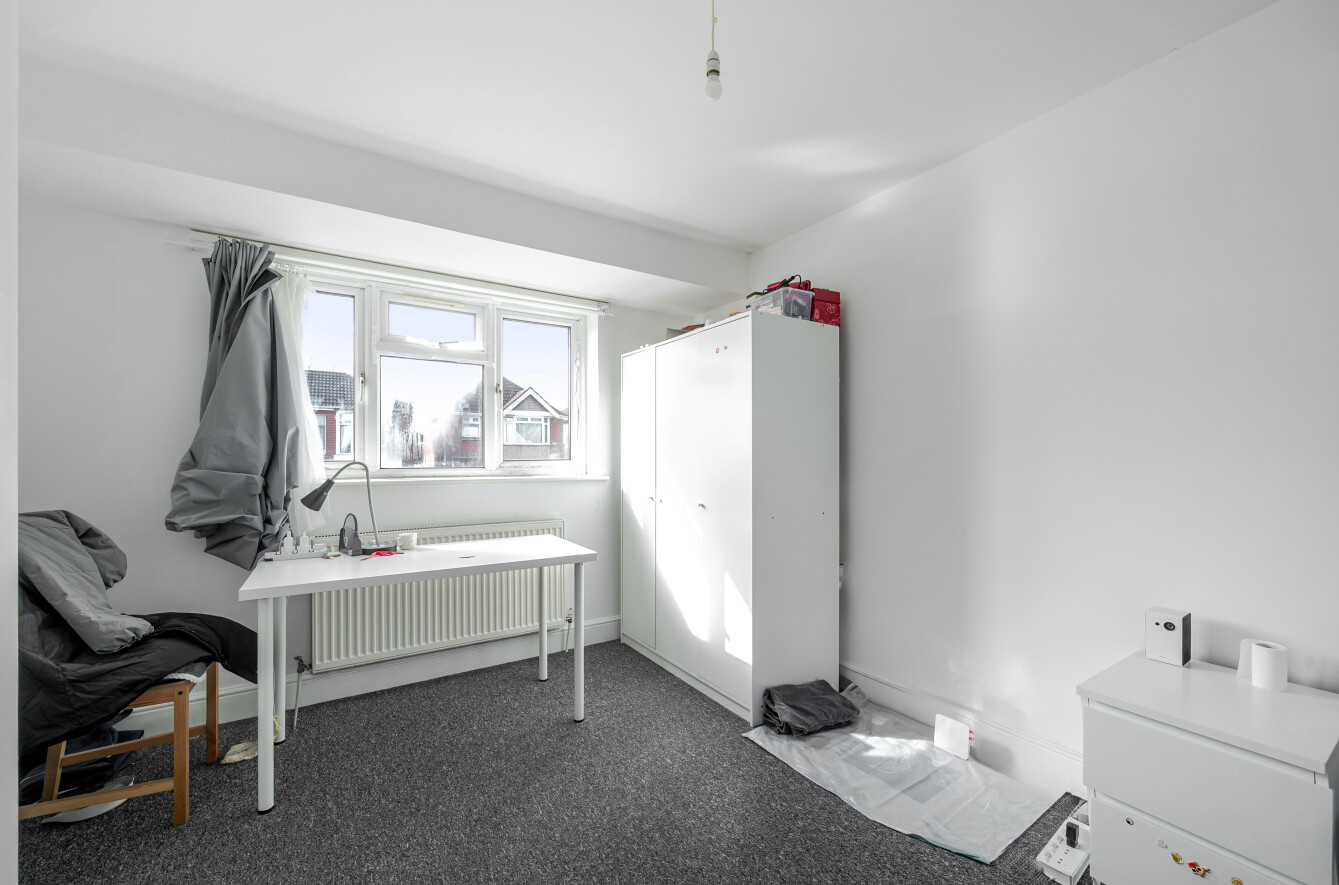 To the front of the home, there is a paved driveway which provides side-by-side off-road parking and a pathway to the main entrance. This opens to a welcoming hallway, which leads to the living room and kitchen.