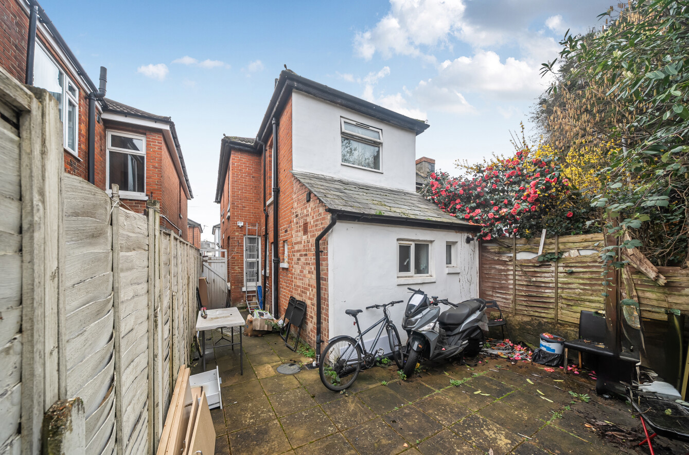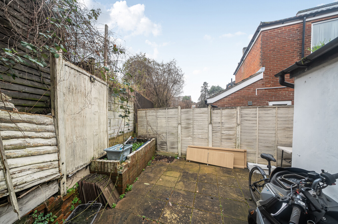 Externally, the property benefits from a low-maintenance courtyard-style rear garden, while residents’ permit parking is available on the road.