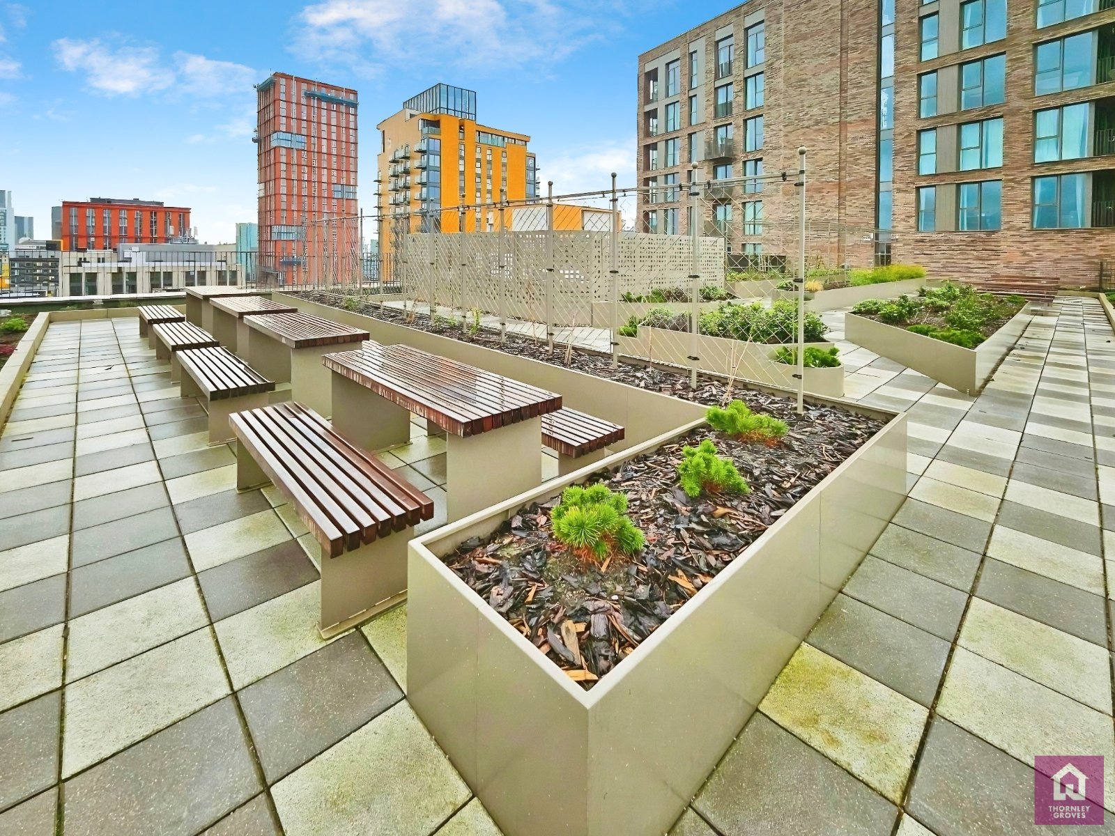 Residents benefit from exceptional on-site amenities, including co-working spaces with free Wi-Fi, a concierge service, a fully equipped gym, and stunning rooftop gardens with impressive city views.