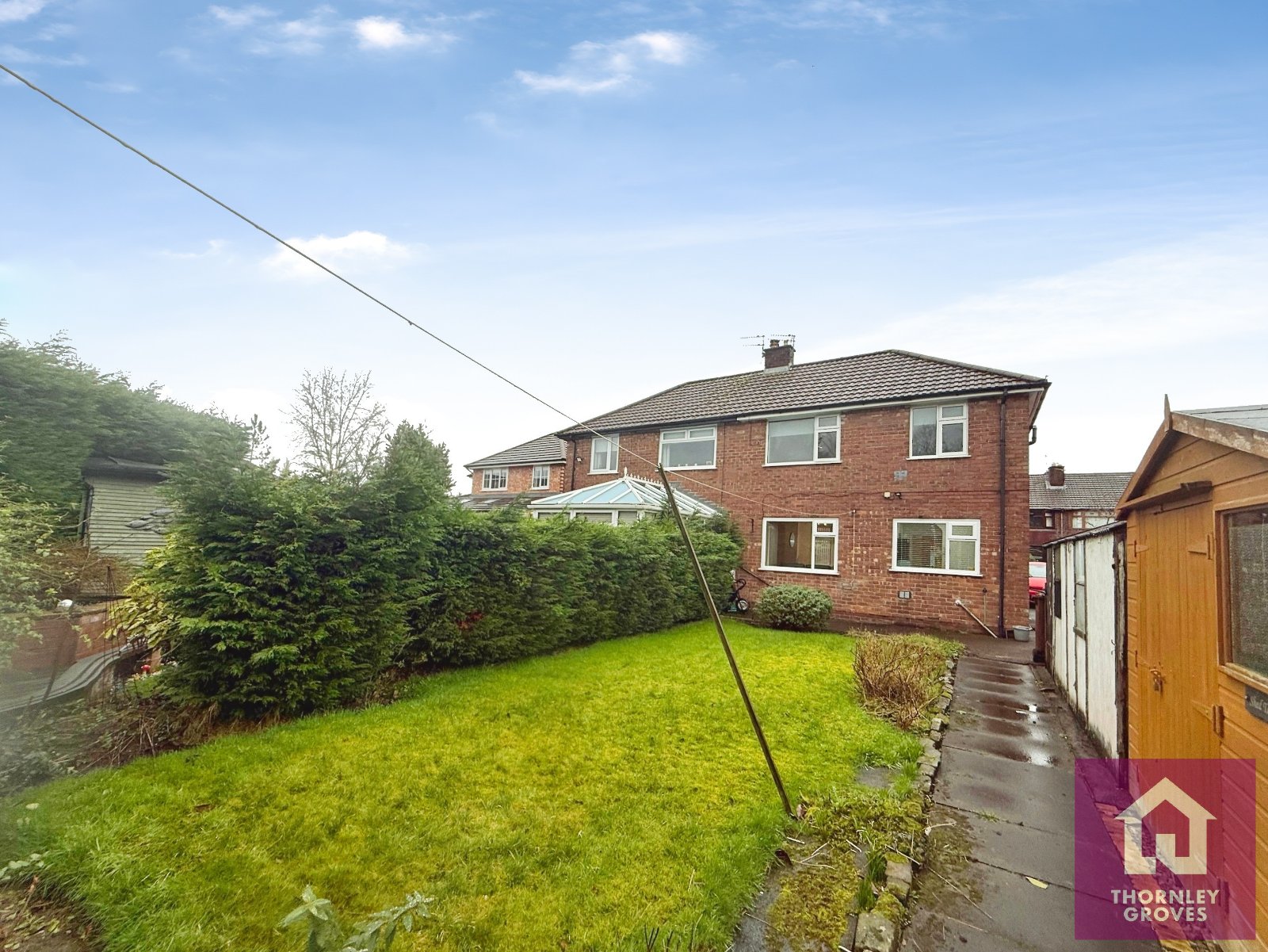 Externally, the extensive 75ft rear garden is designed for both relaxation and entertaining, featuring a lawn, patio area, enclosed fencing, and access to the detached garage.